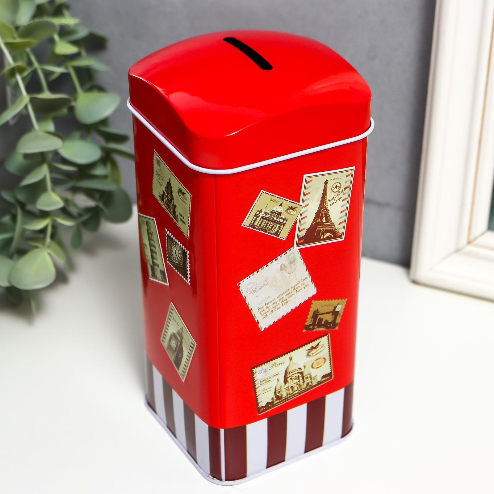 Копилка металл "Почтовые марки" 16х7х7 см 4291079