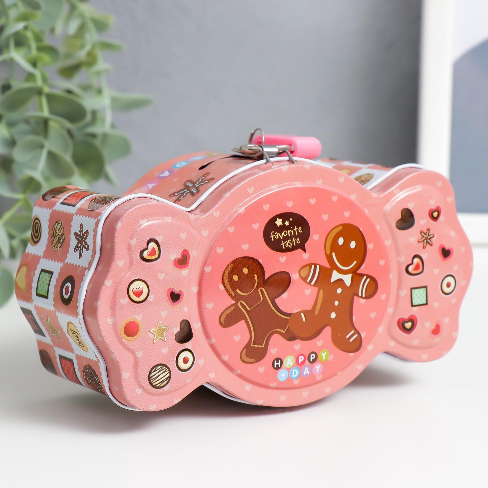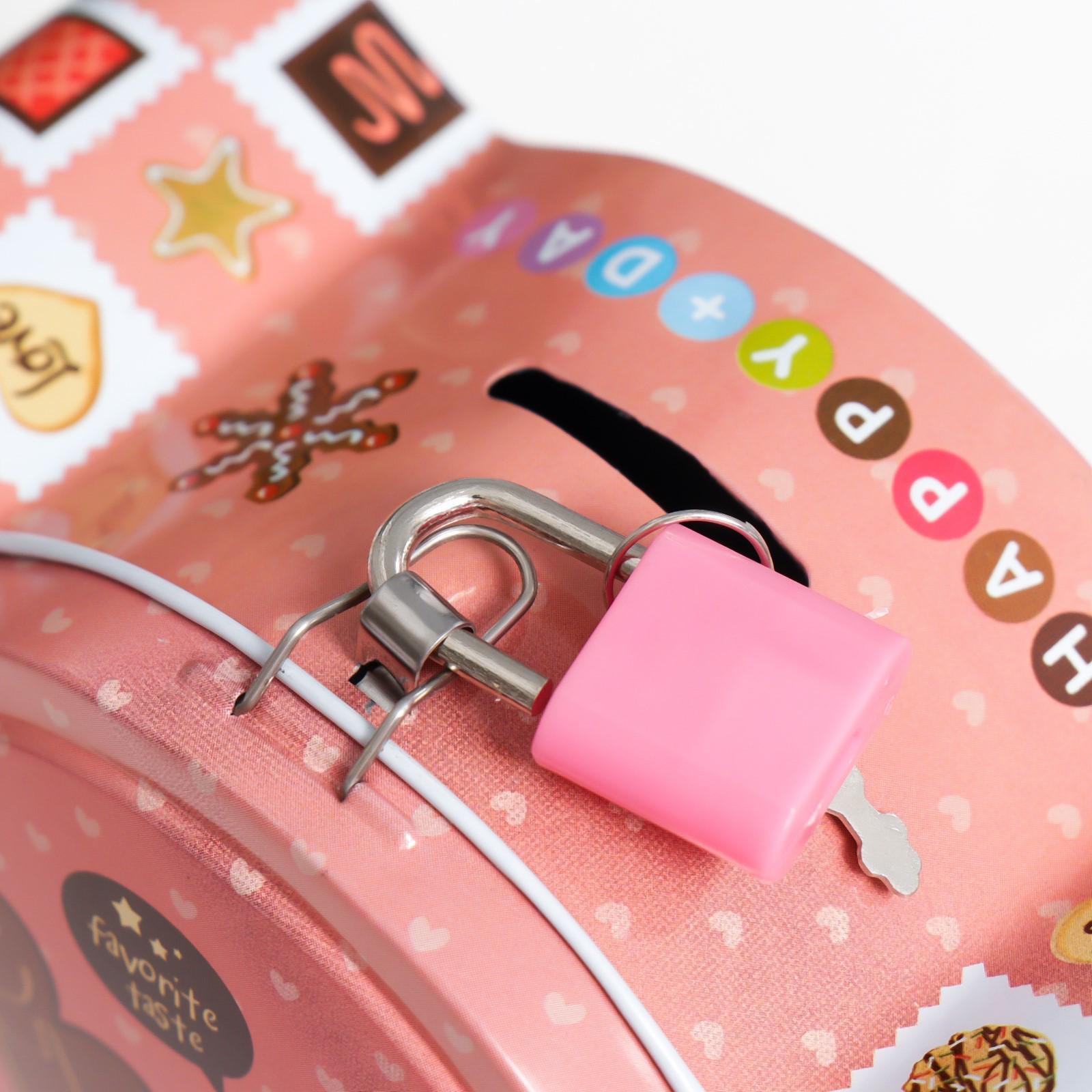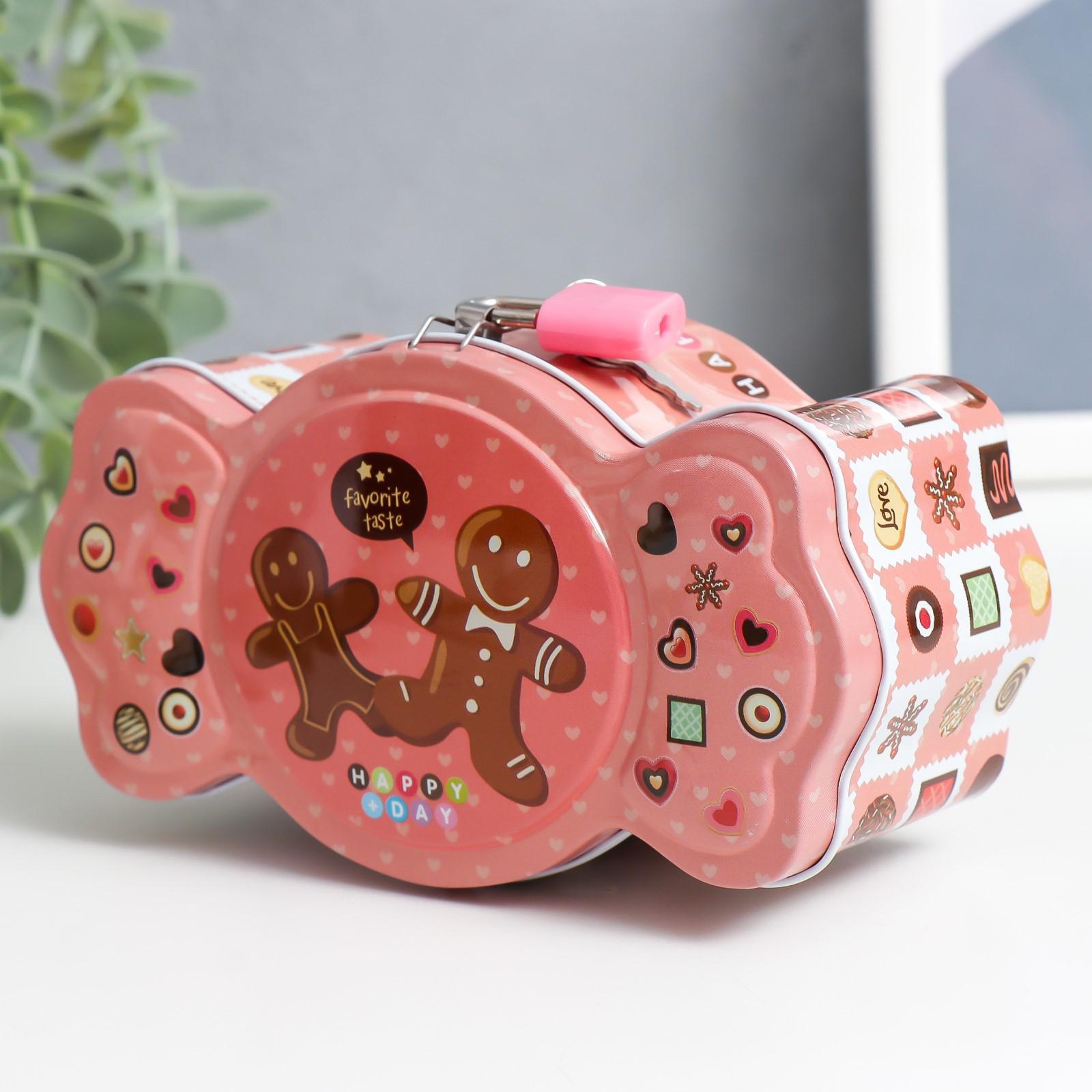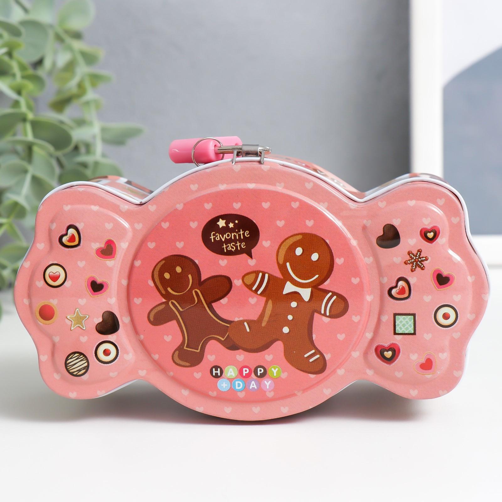Копилка металл с замочком "Конфетка со сладостями" МИКС 15,5х6,3х8,5 см 7963853