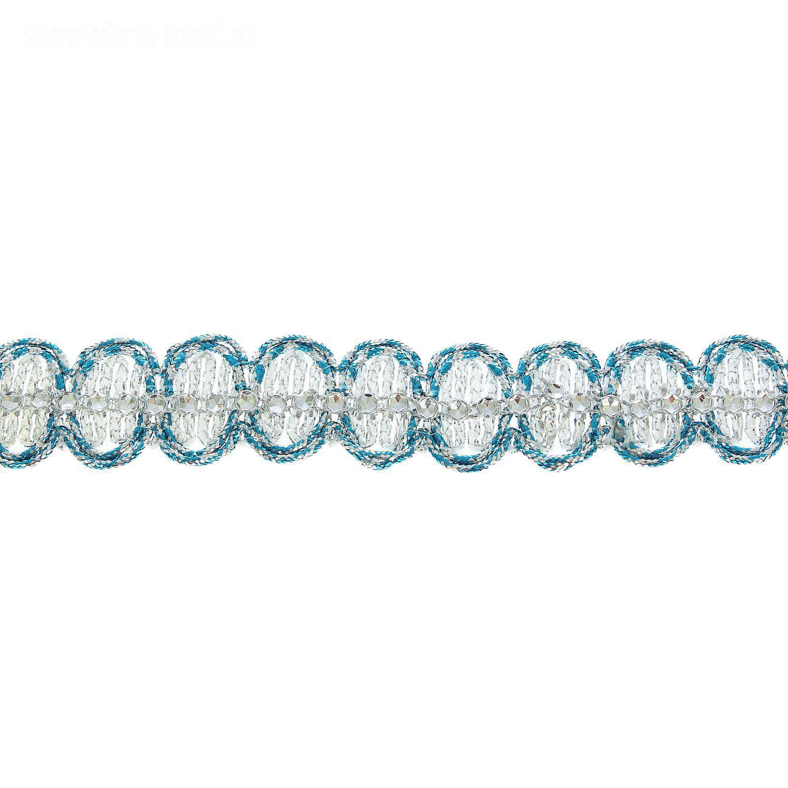 Тесьма голубая с серебром и стразами, в рулоне 10 м