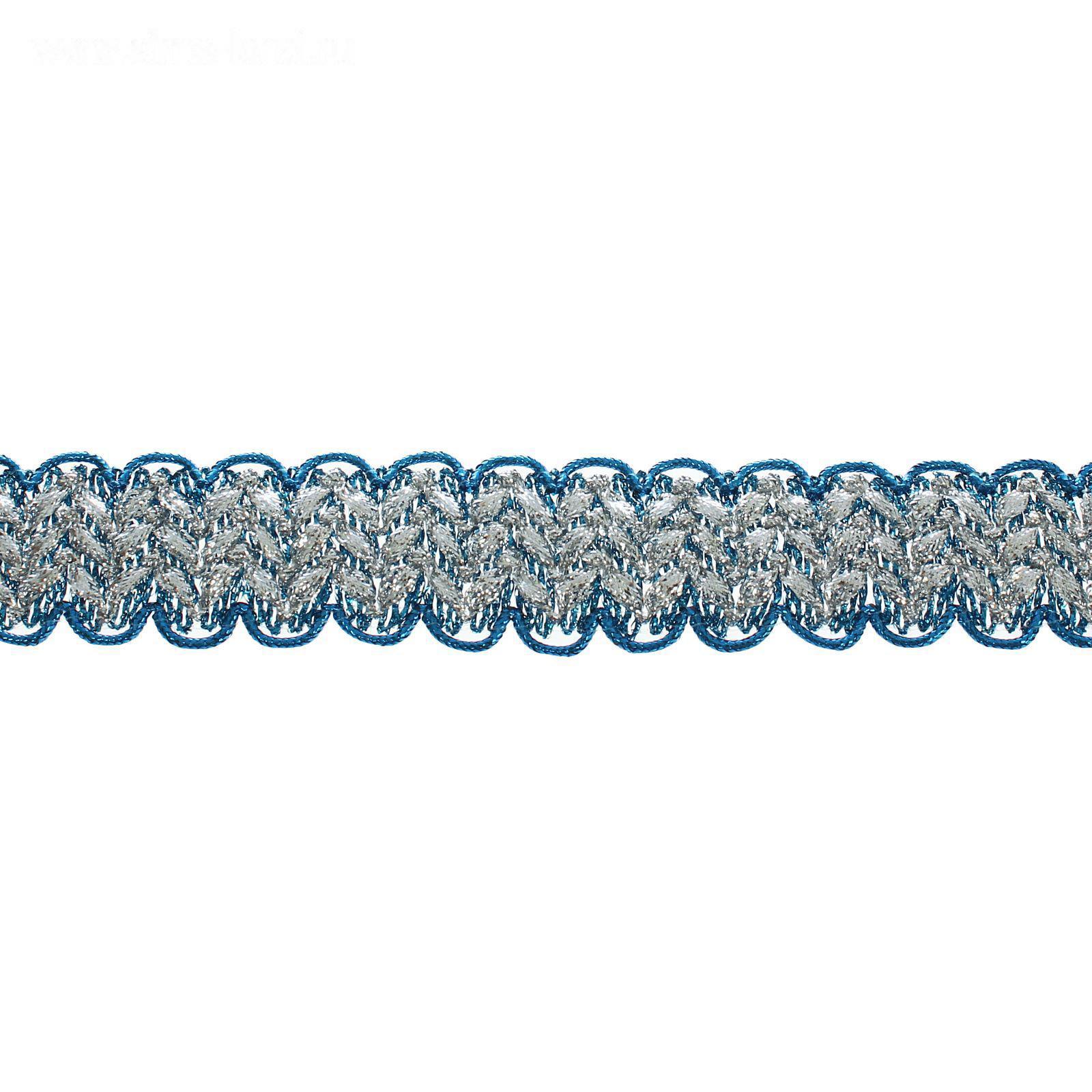 Тесьма волной, голубая с серебром, в рулоне 10 м