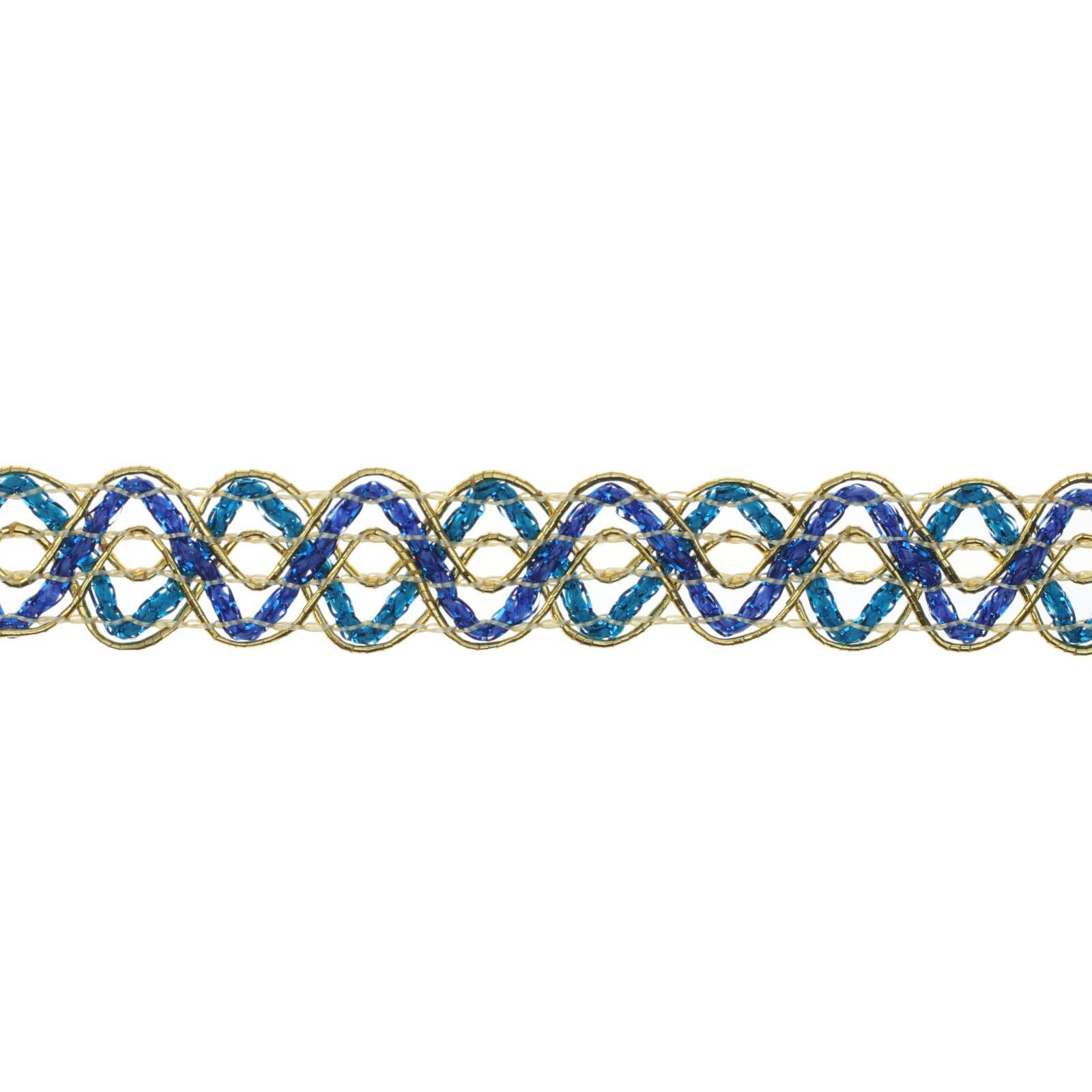Тесьма «Змейка», сине-голубая с золотом, 1,5 см, 25 м