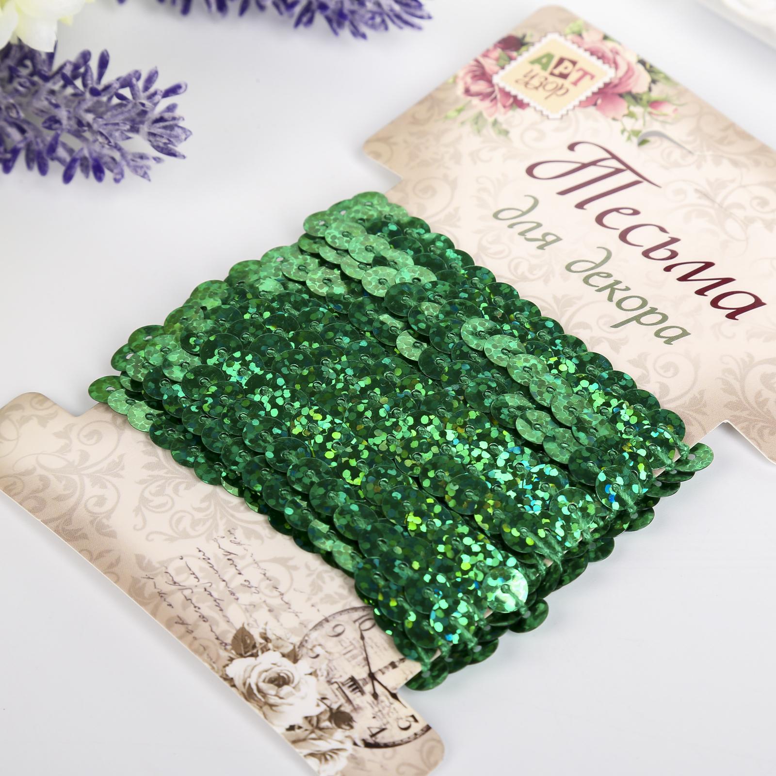 Нить из пайеток голографическая "Зелёная" намотка 3 метра