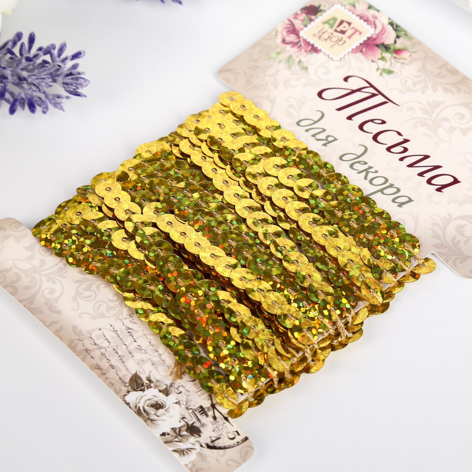 Нить из пайеток голографическая "Золото" намотка 5 метров