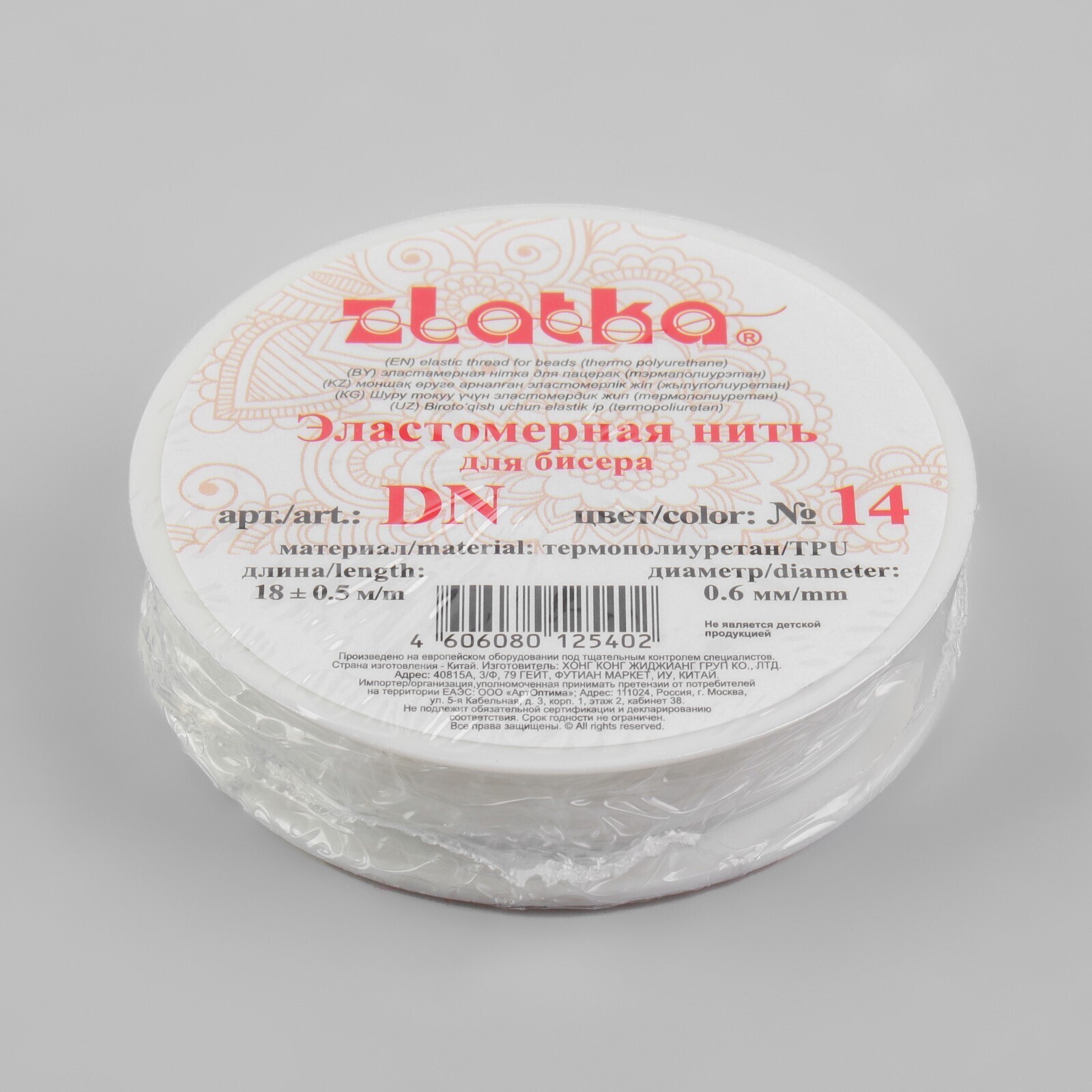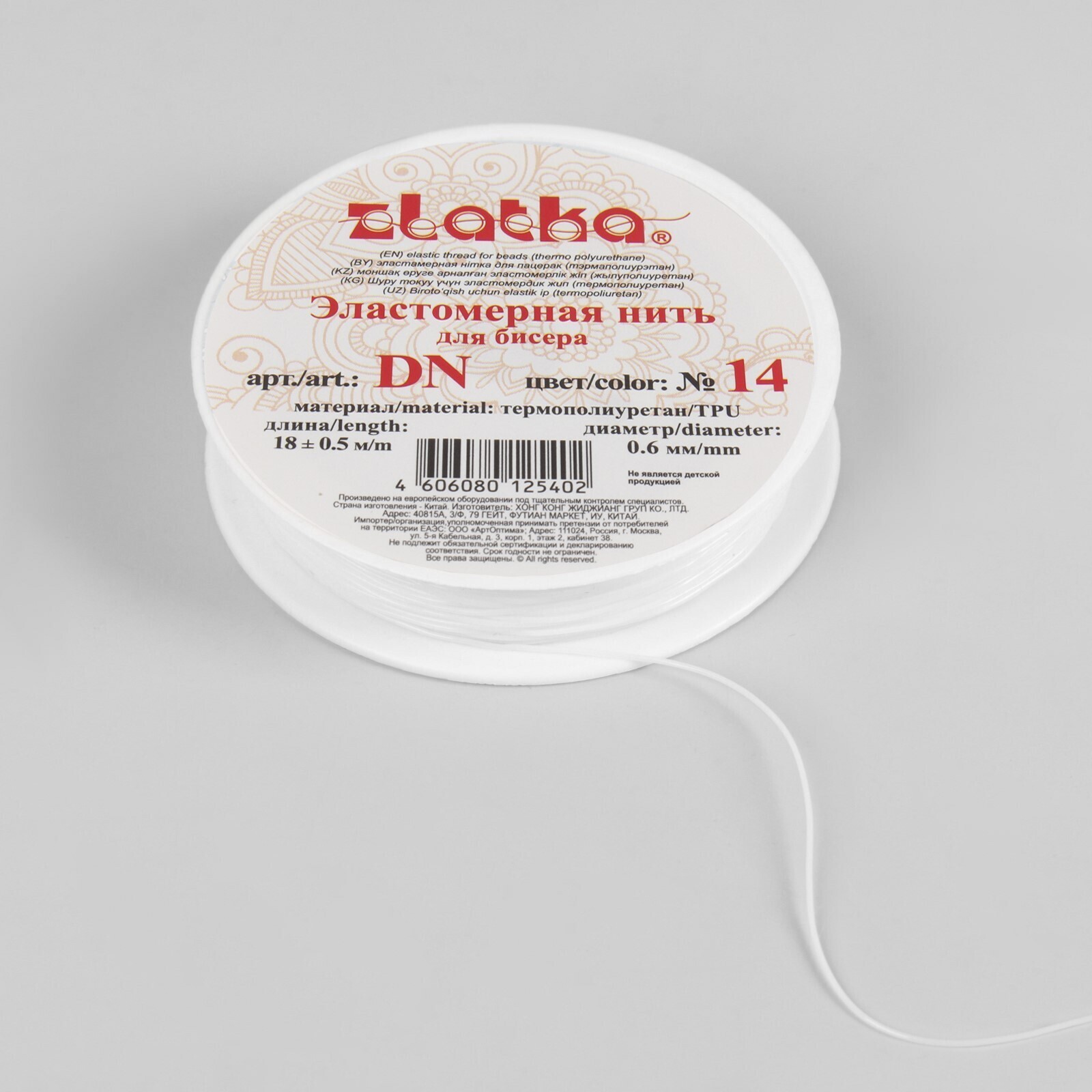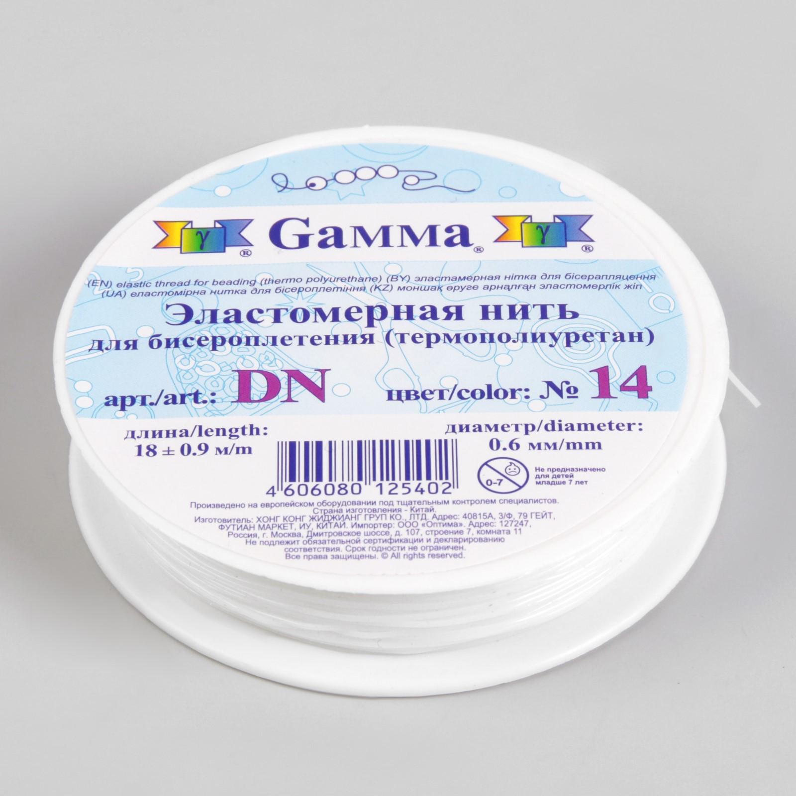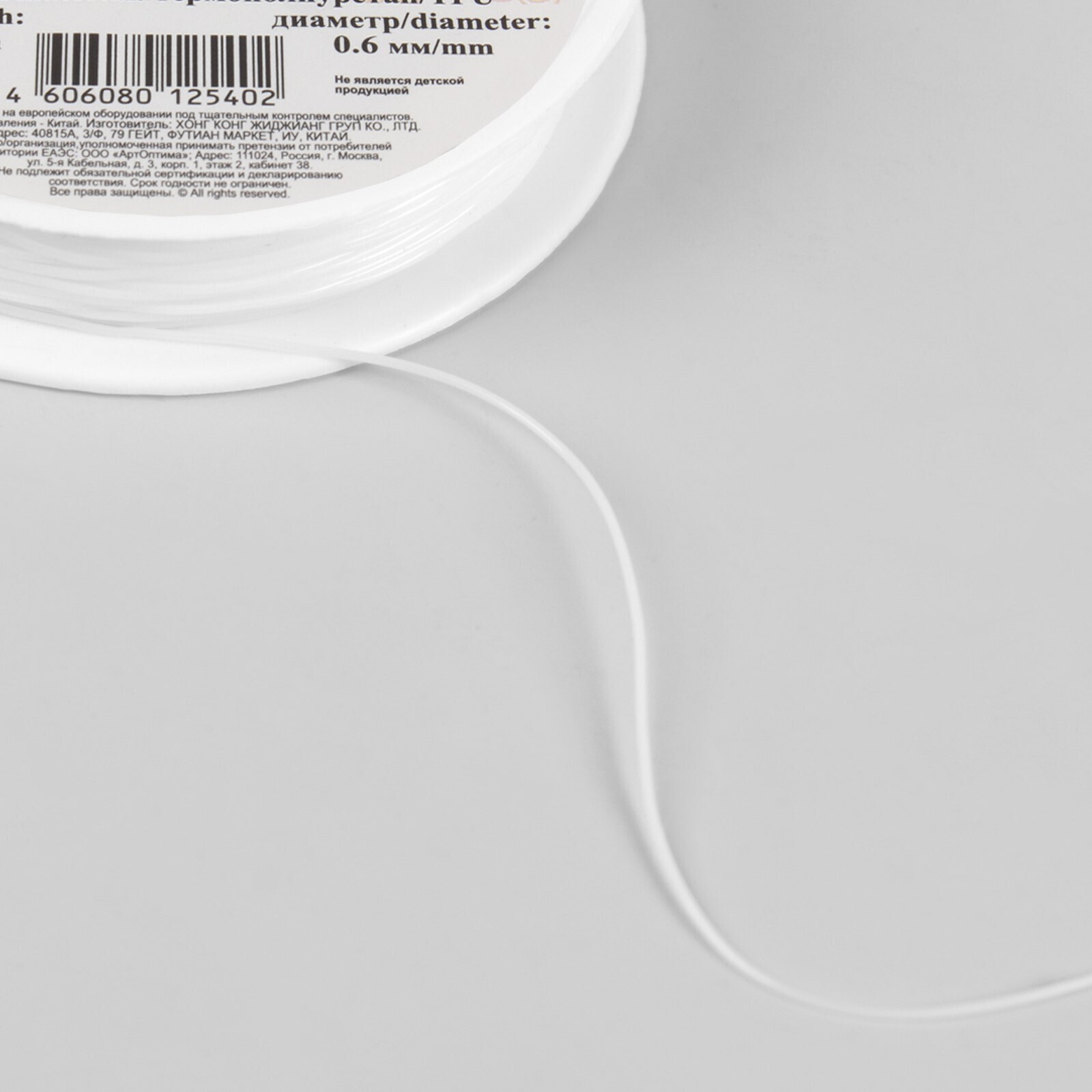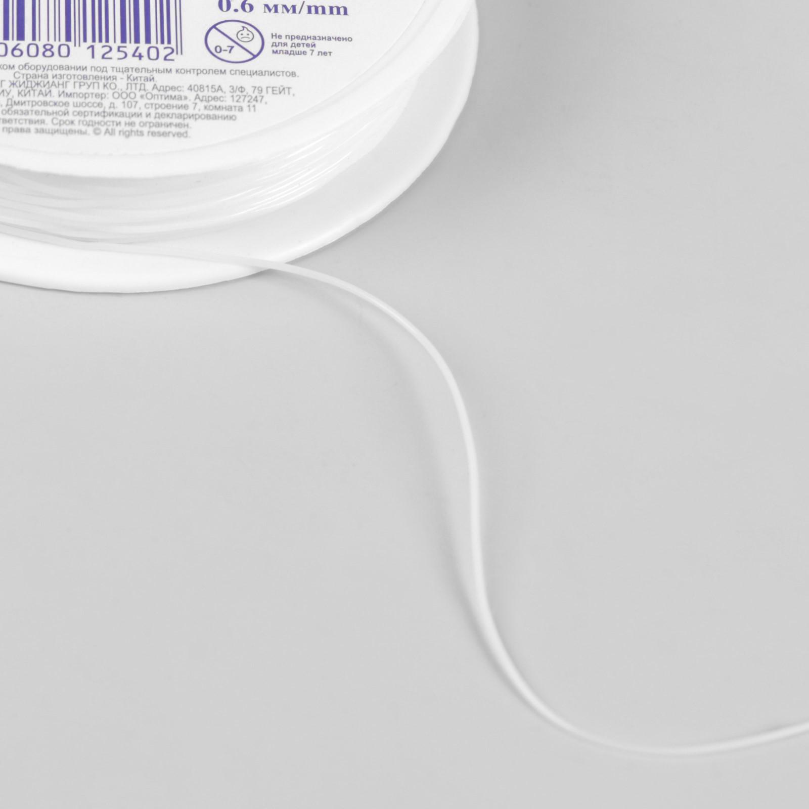 Резинка для бисера, 0,6 мм, 18 ± 1 м, цвет белый 1318932