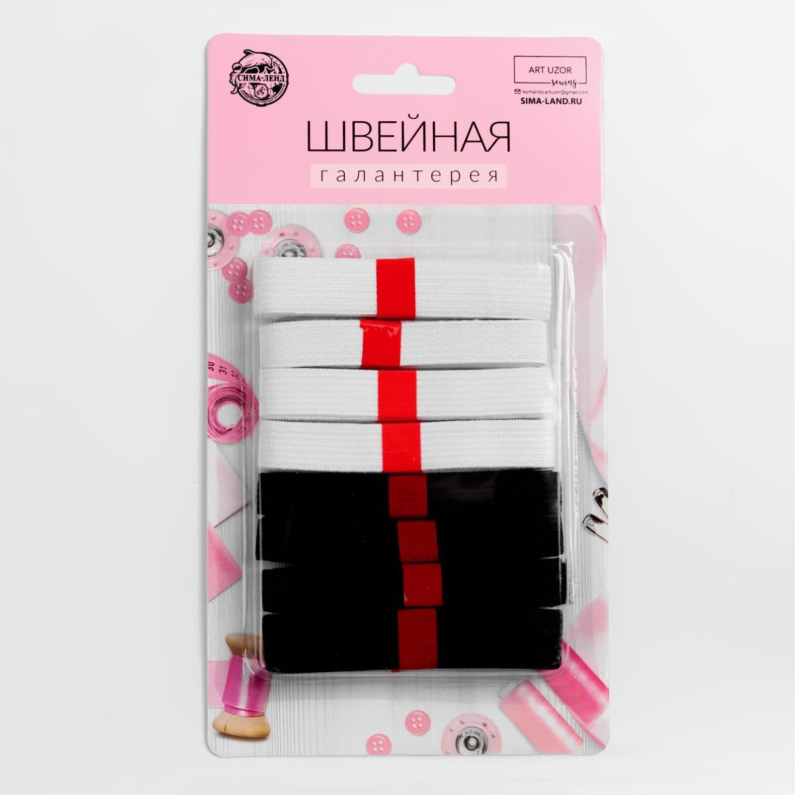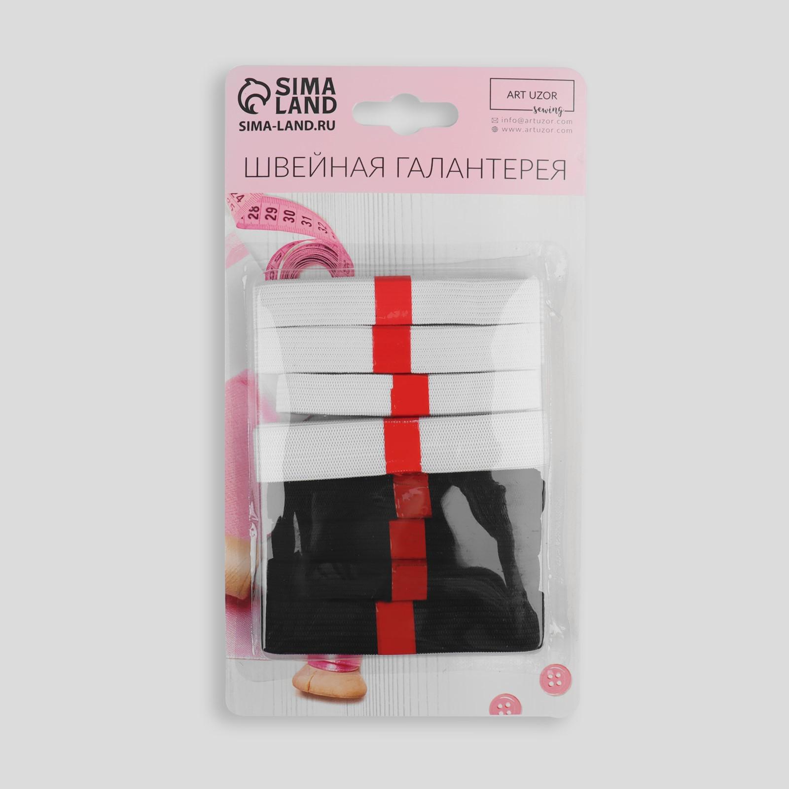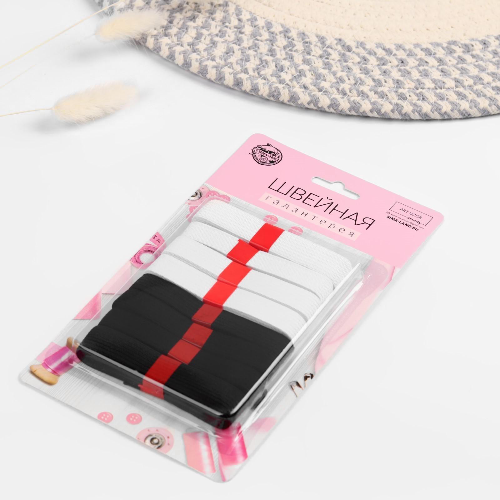 Резинки эластичные, 10/12/15 мм, 1 м, 8 шт, цвет чёрный/белый