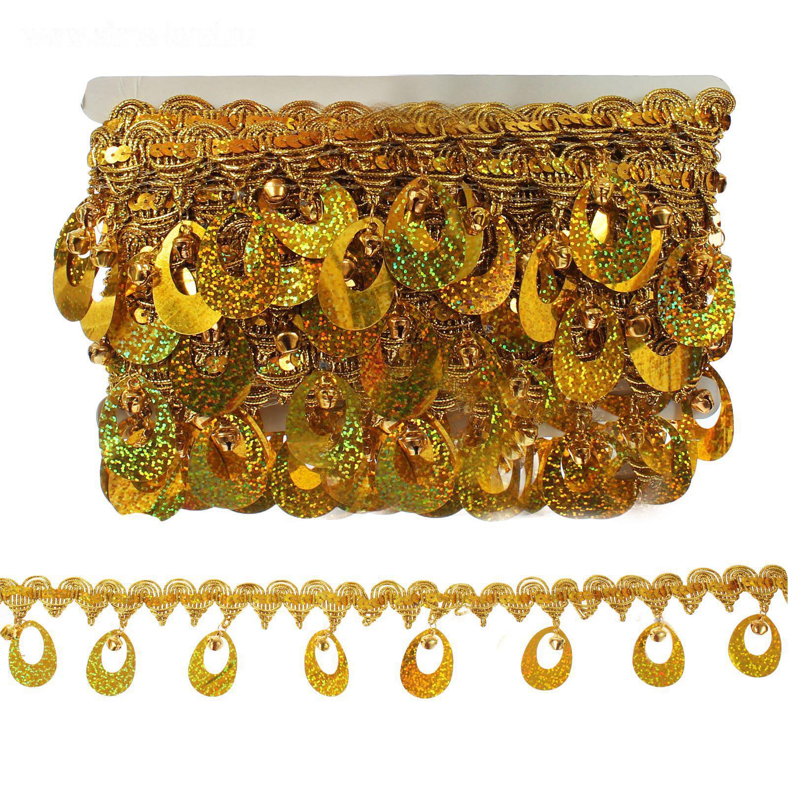 Тесьма с висюльками, ширина 6,6 см., в рулоне 10 м., золотая