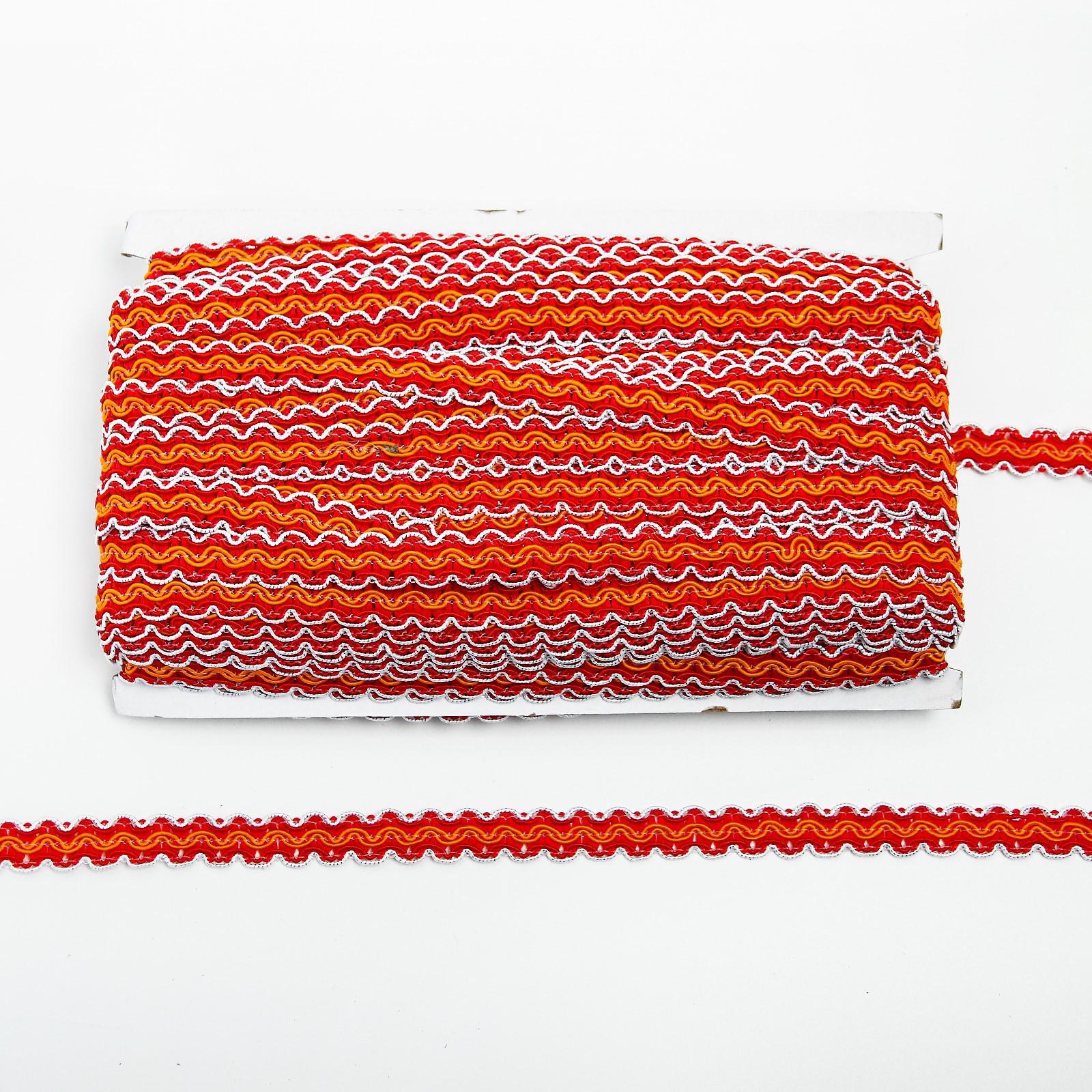Тесьма бело-красно-оранжевая, ширина 1,2 см, по 50 м