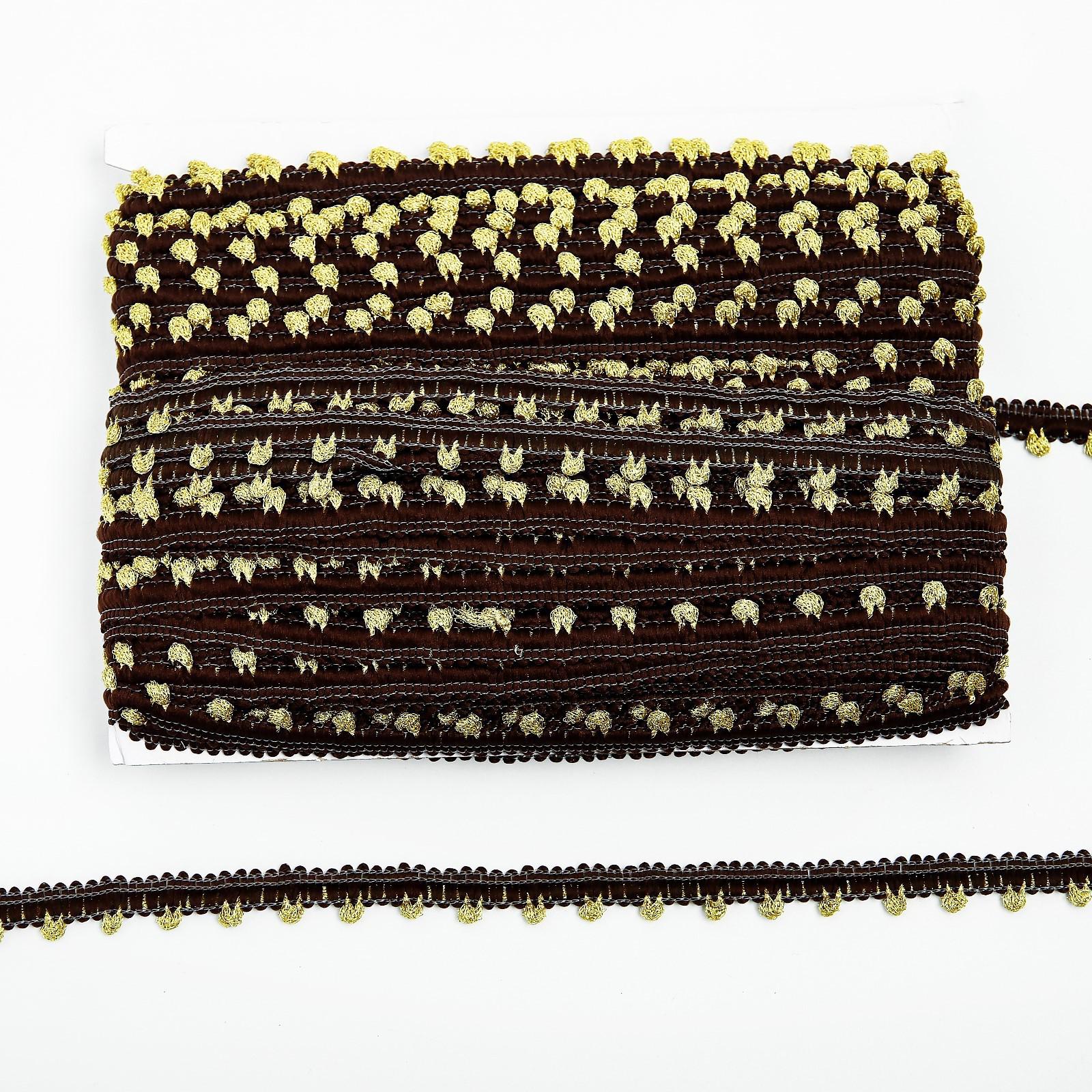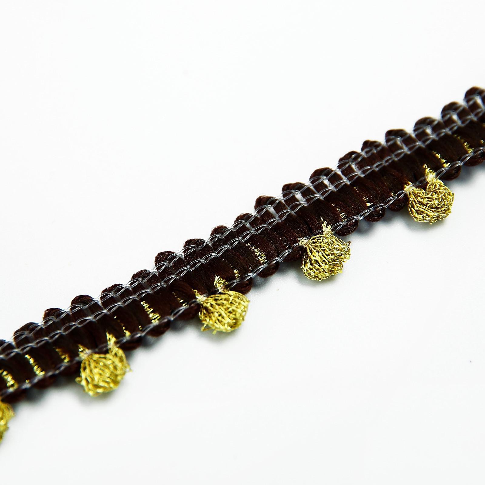 Тесьма коричневая с золотом, ширина 1,4 см, по 50 м
