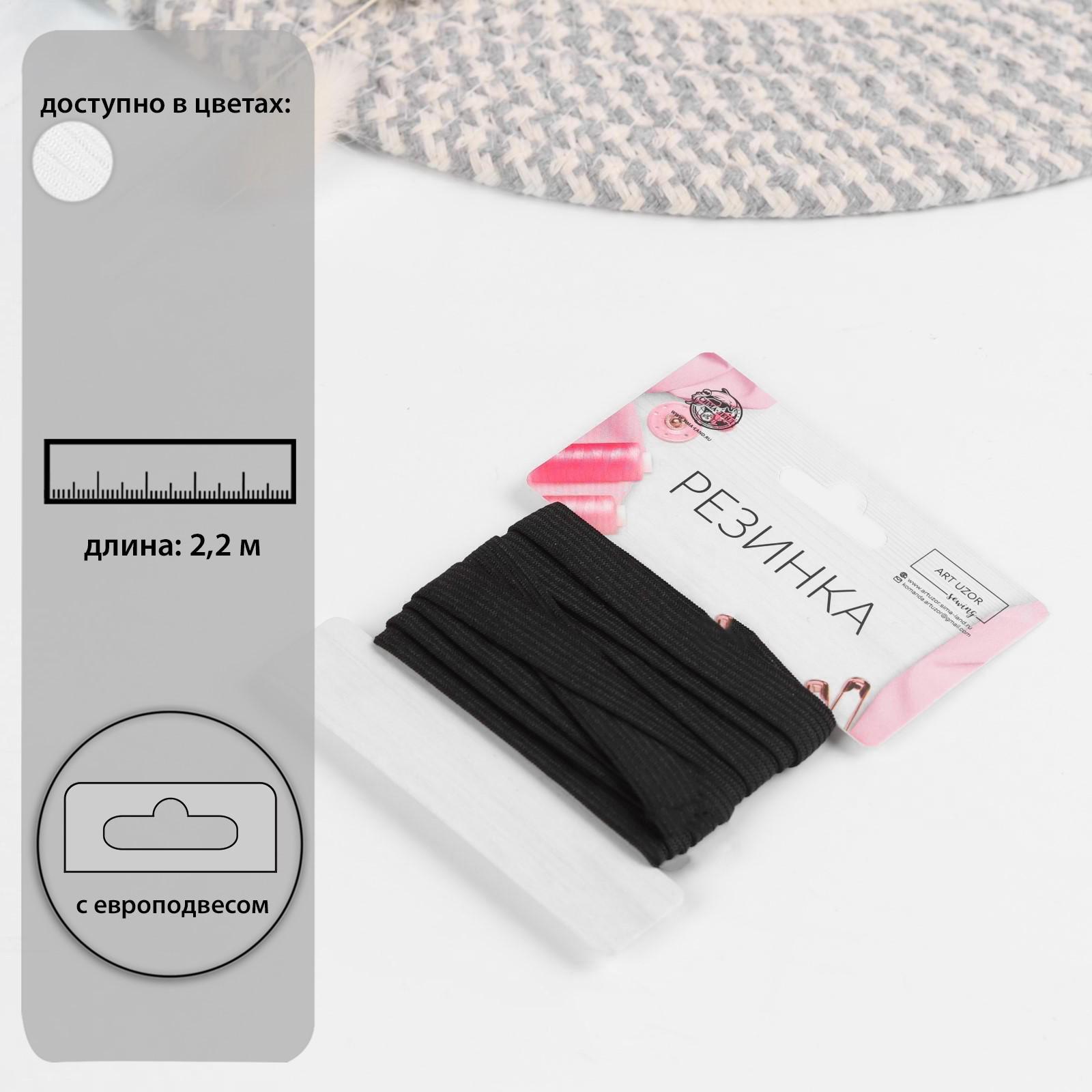 Резинка вязаная, 10 мм, 2,2 м, цвет чёрный