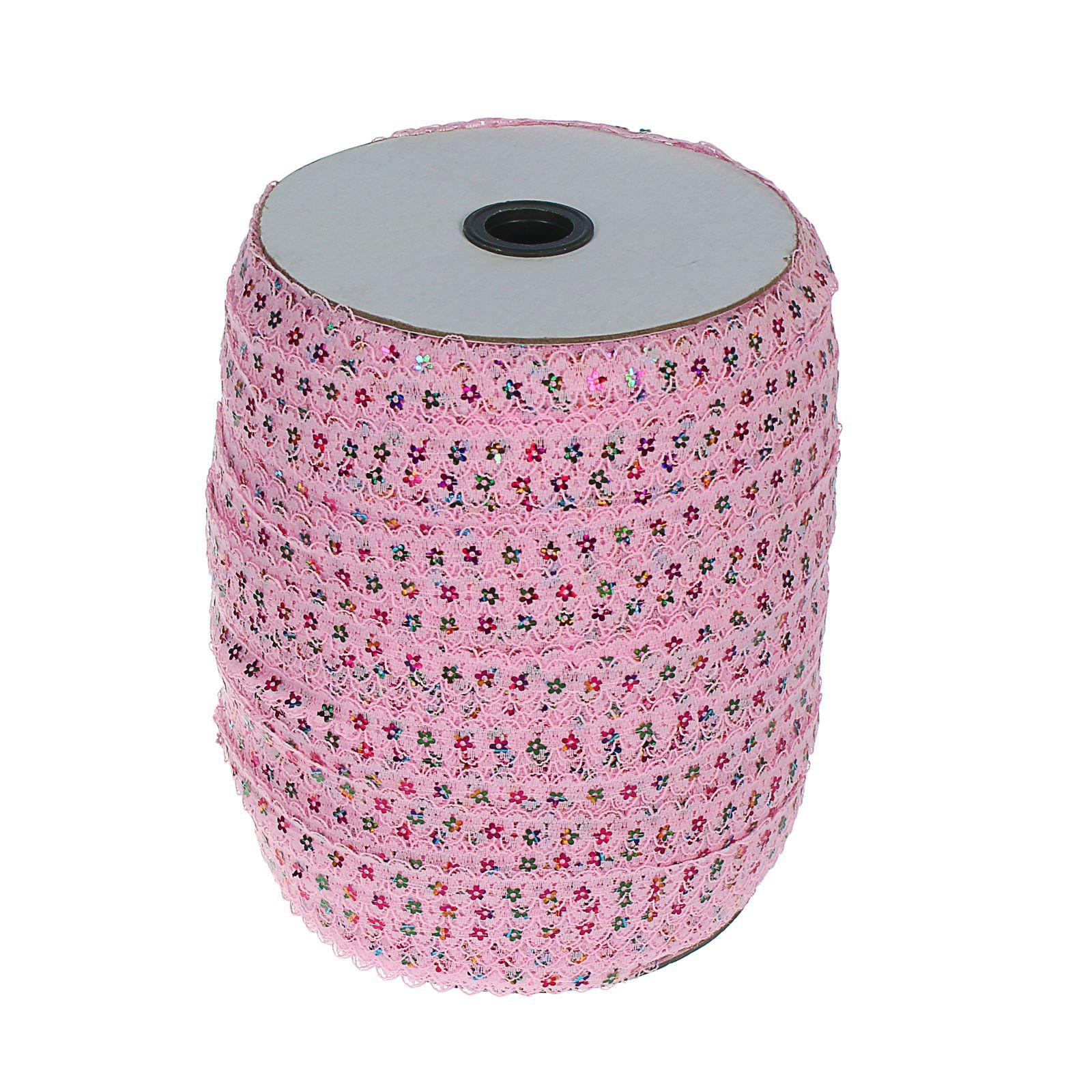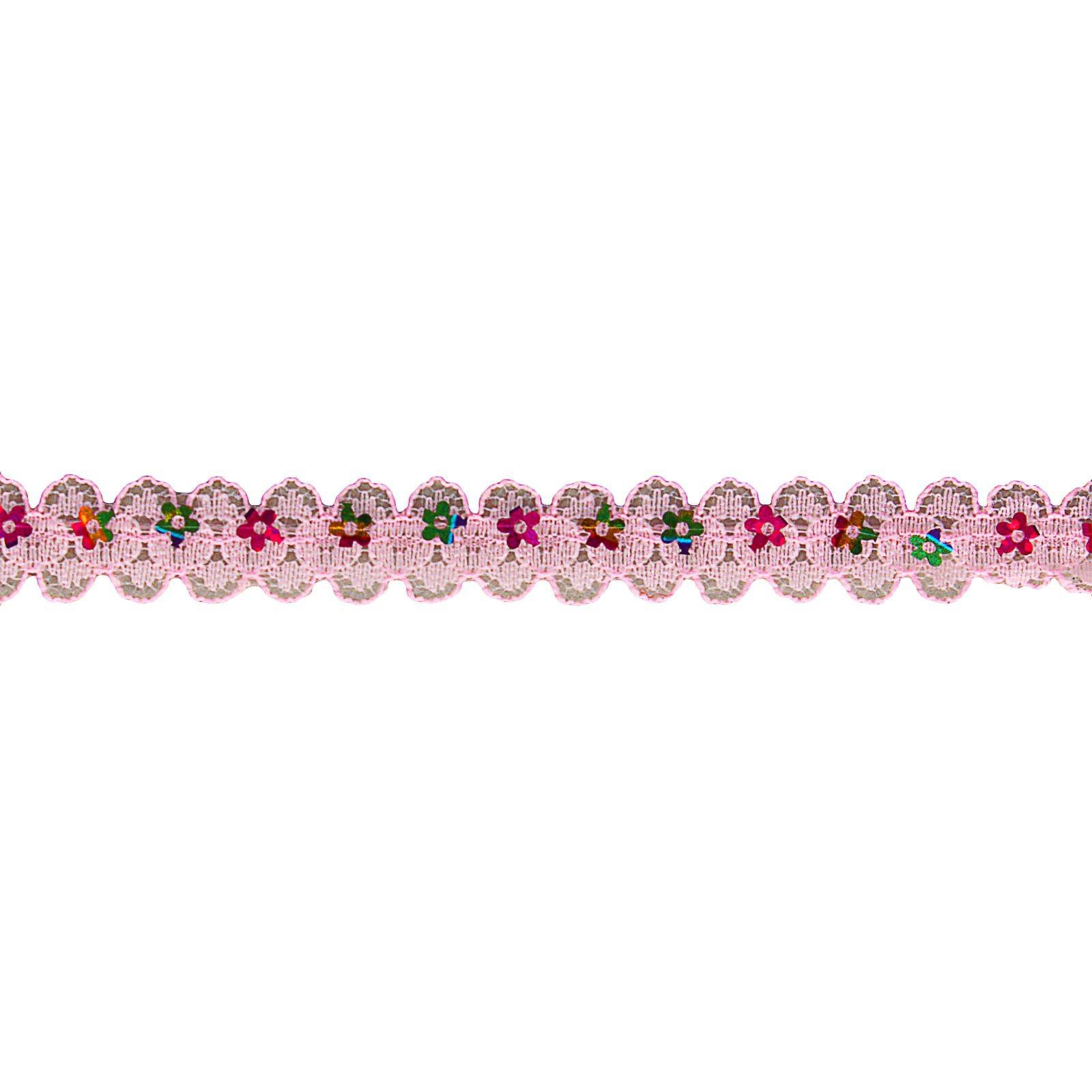 Тесьма гипюровая розовая с пайетками, ширина 1,3 см, по 548 м