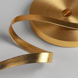 Косая бейка, кожзам, 12 мм × 10 ± 1 м, цвет золотой