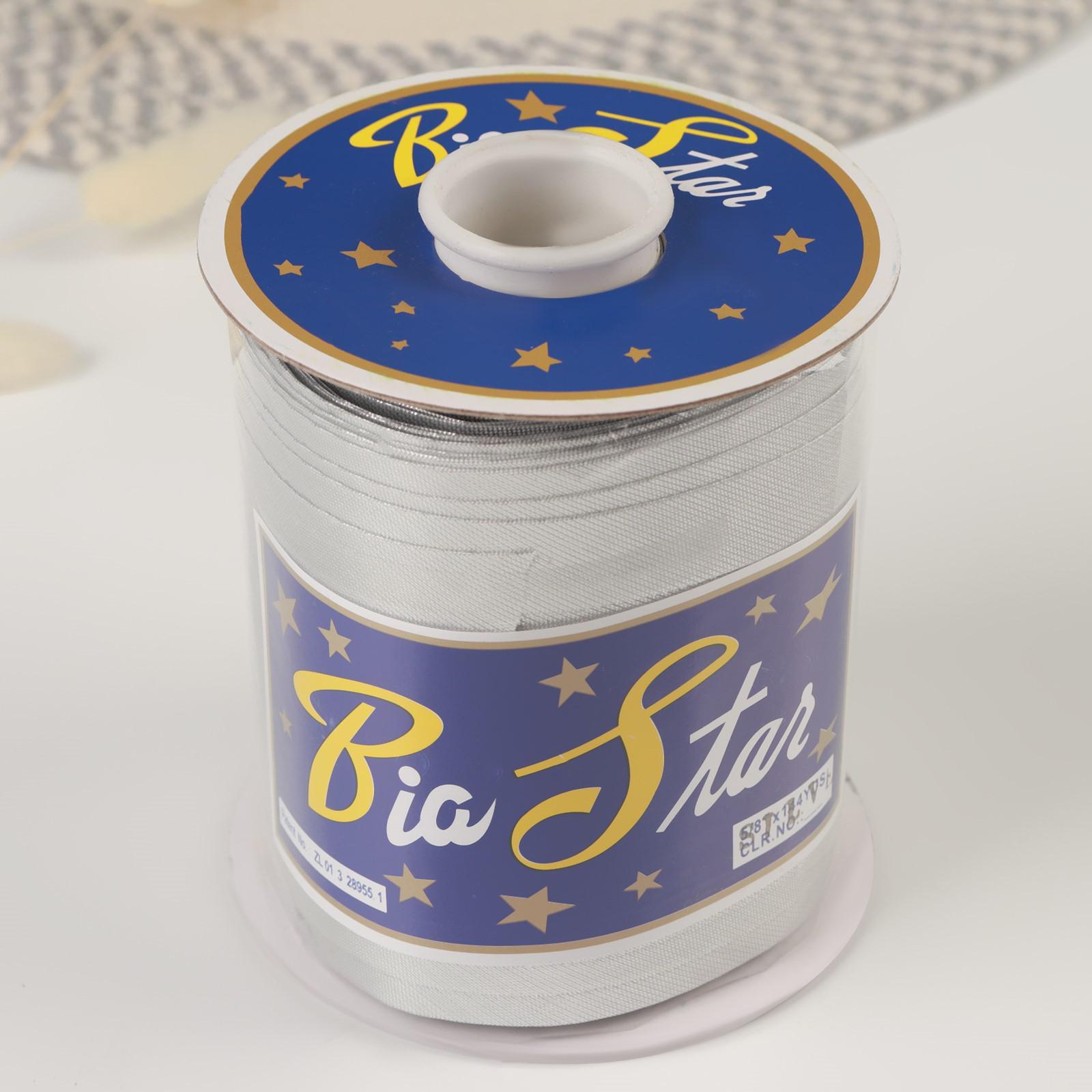 Косая бейка, 15 мм × 132 м, цвет серебряный