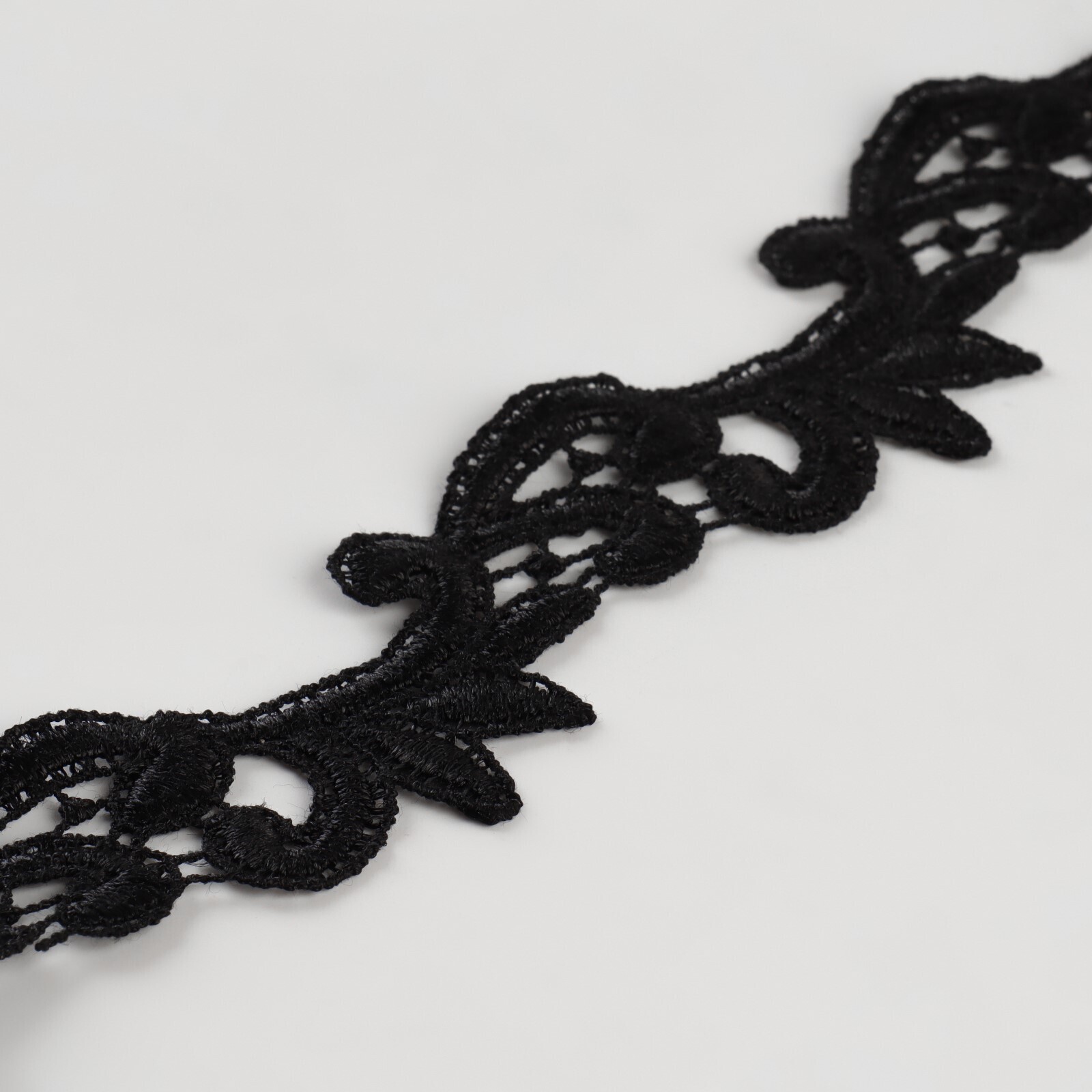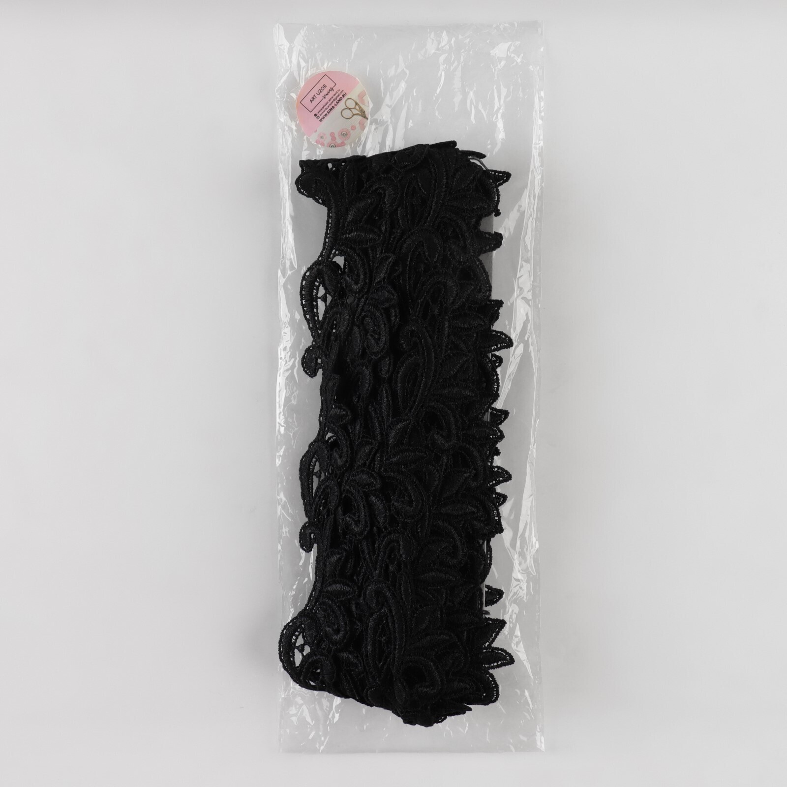 Кружево гипюровое, 40 мм × 9 ± 0,5 м, цвет чёрный