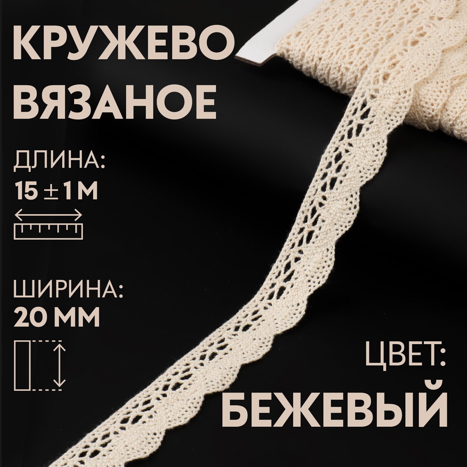 Кружево вязаное, 20 мм × 15 ± 1 м, цвет бежевый