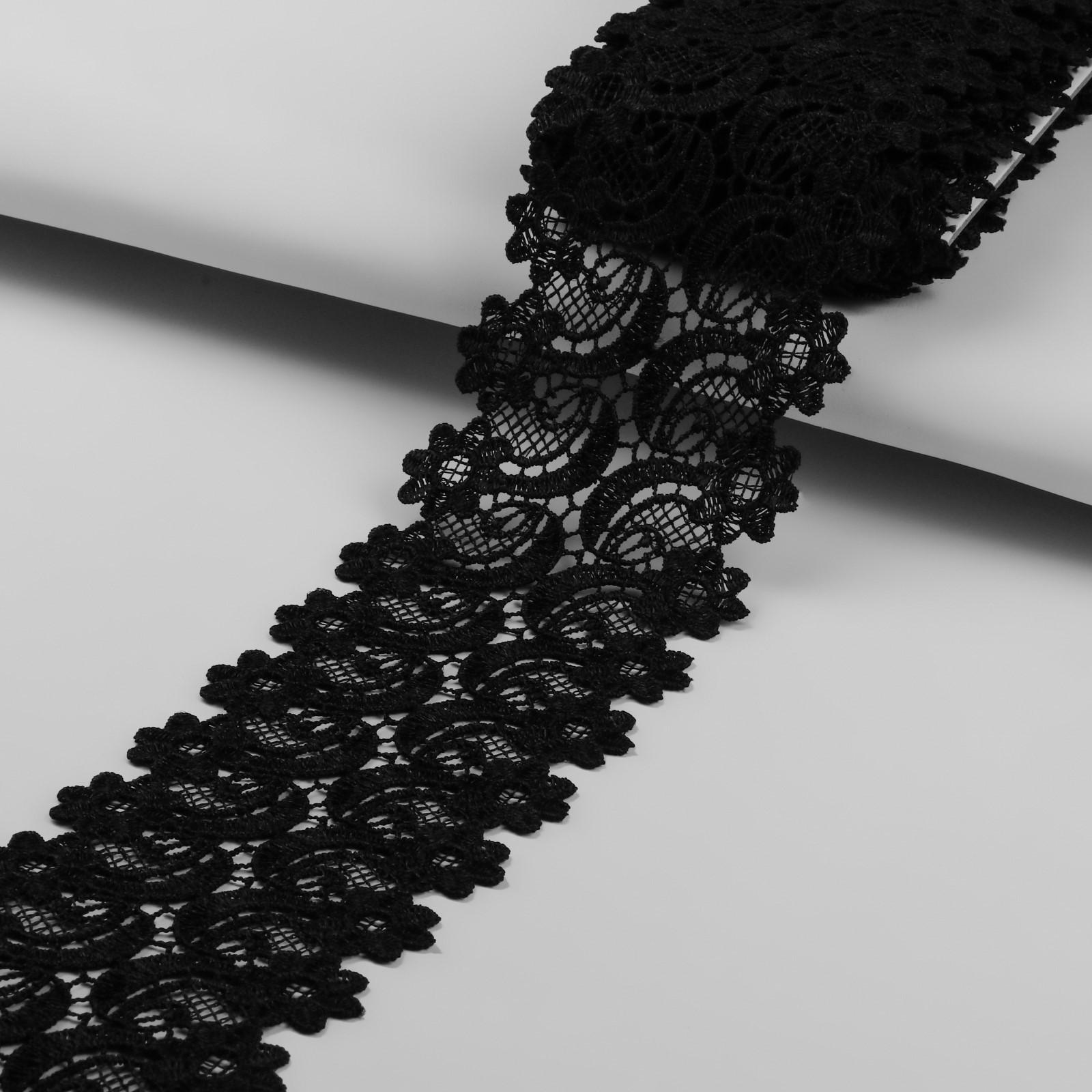 Кружево гипюровое, 70 мм × 6,8 ± 0,5 м, цвет чёрный