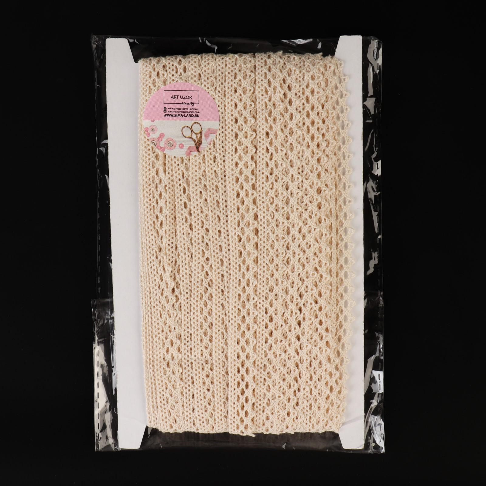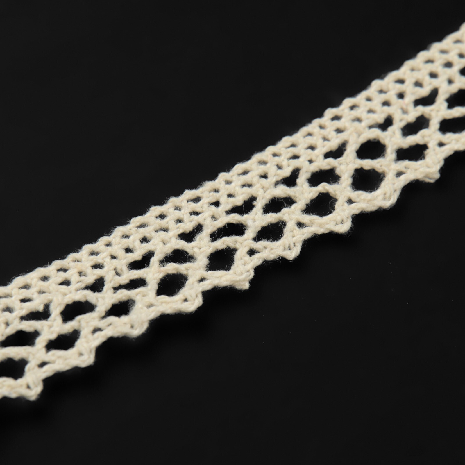 Кружево вязаное, 15 мм × 15 ± 1 м, цвет бежевый
