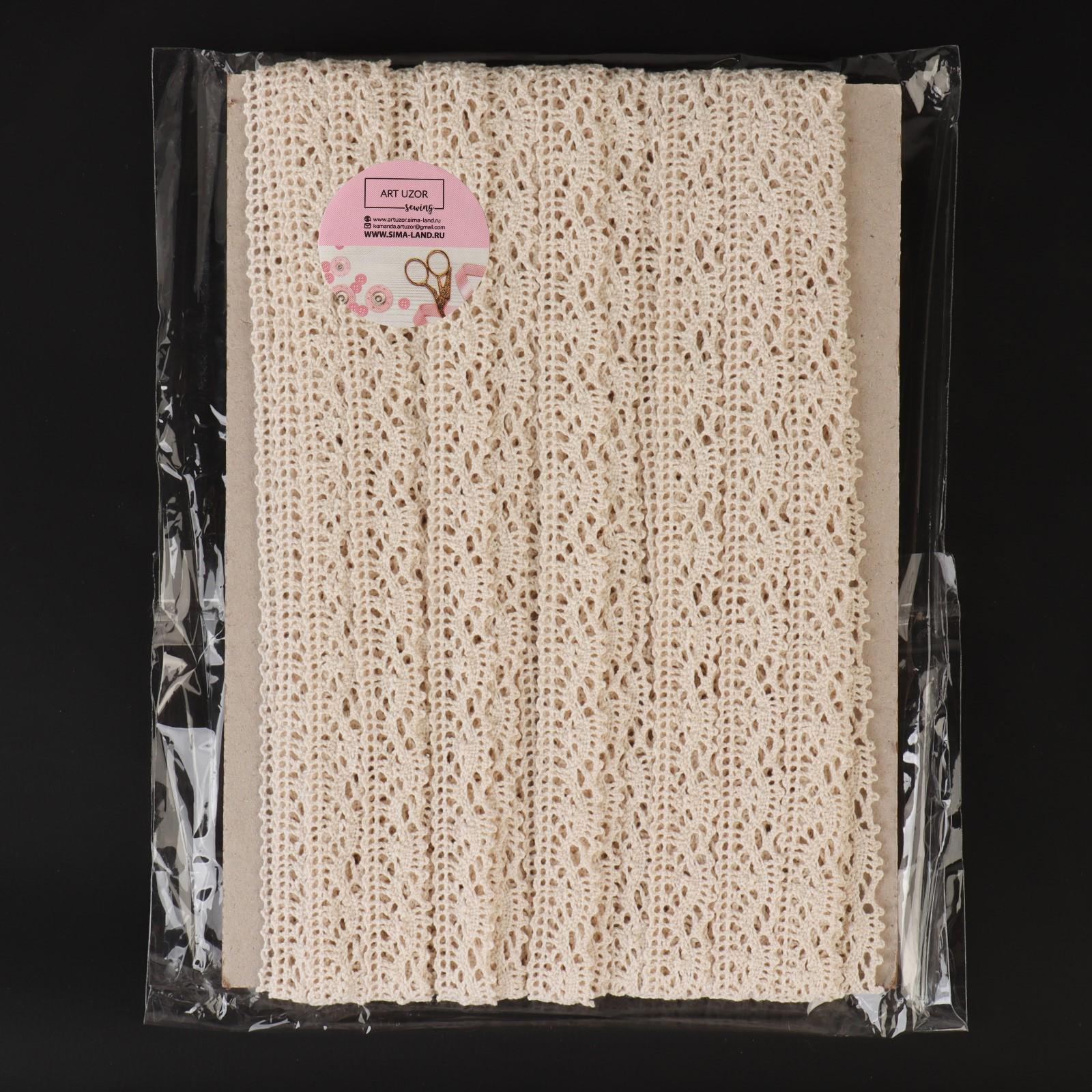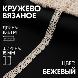 Кружево вязаное, 15 мм × 15 ± 1 м, цвет бежевый 1354156