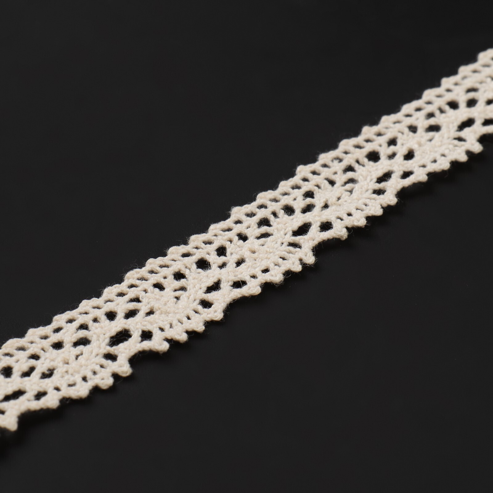 Вязаное кружево легко спутать с hand-made – рисунок у него сложный и выразительный. Узоры, созданные из переплетения множества нитей, принимают нужную форму и красиво смотрятся на любом изделии. Вязаное кружево — отличный вариант для декора одежды и домашнего текстиля. А также если хотите дополнить аксессуар деталью, будто связанной крючком, такой вариант отлично подойдёт.