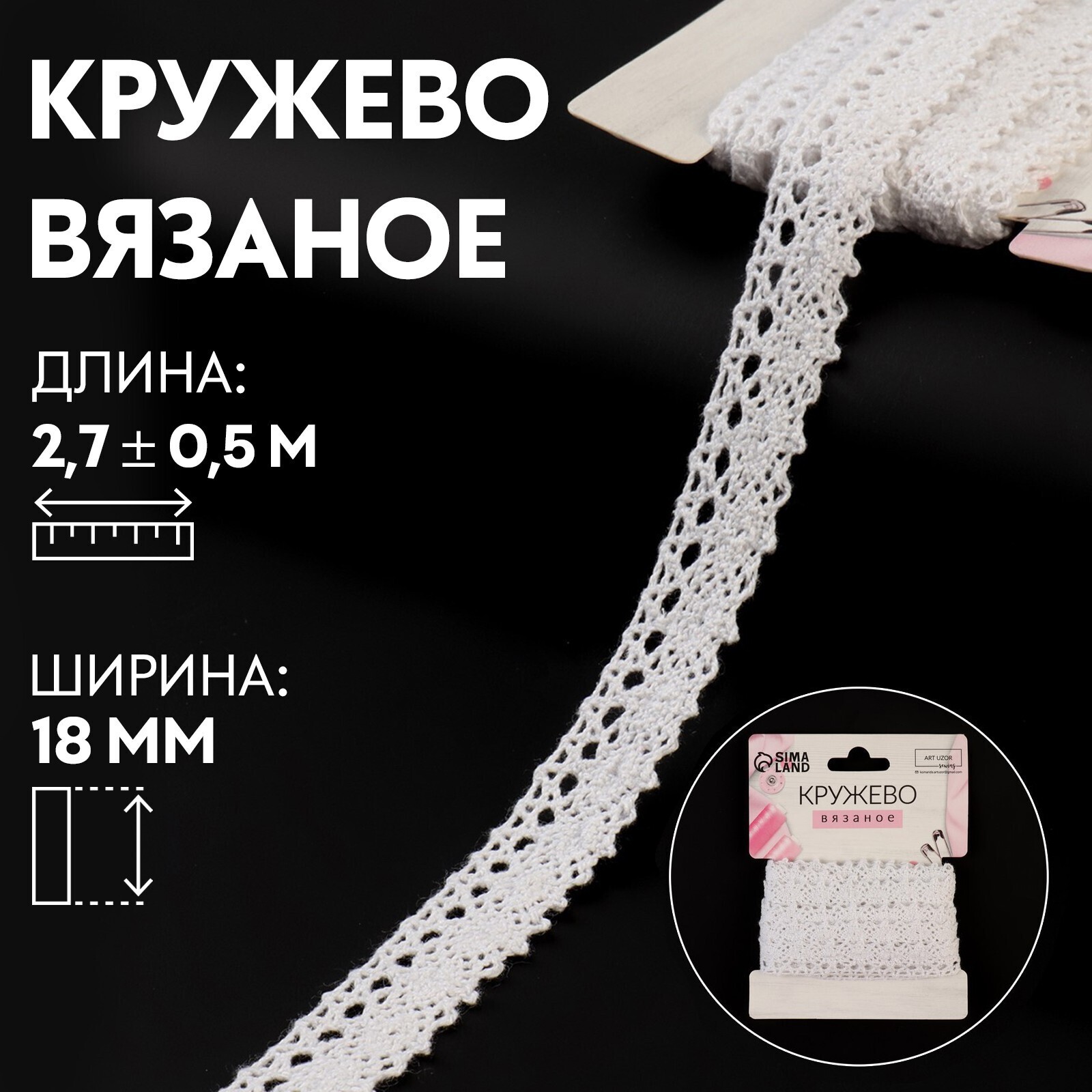 Кружево вязаное, 18 мм × 2,7 ± 0,5 м, цвет айвори 5138450