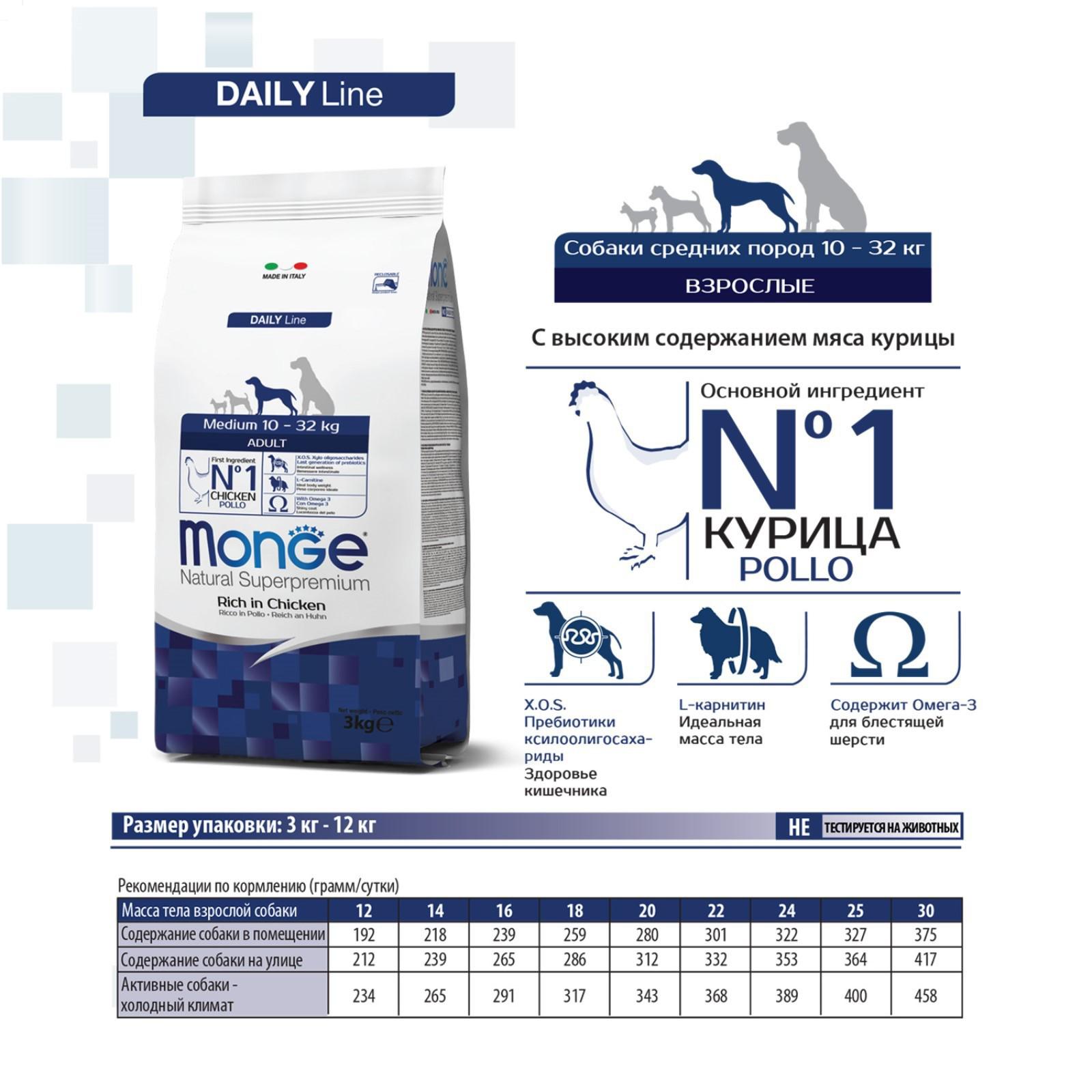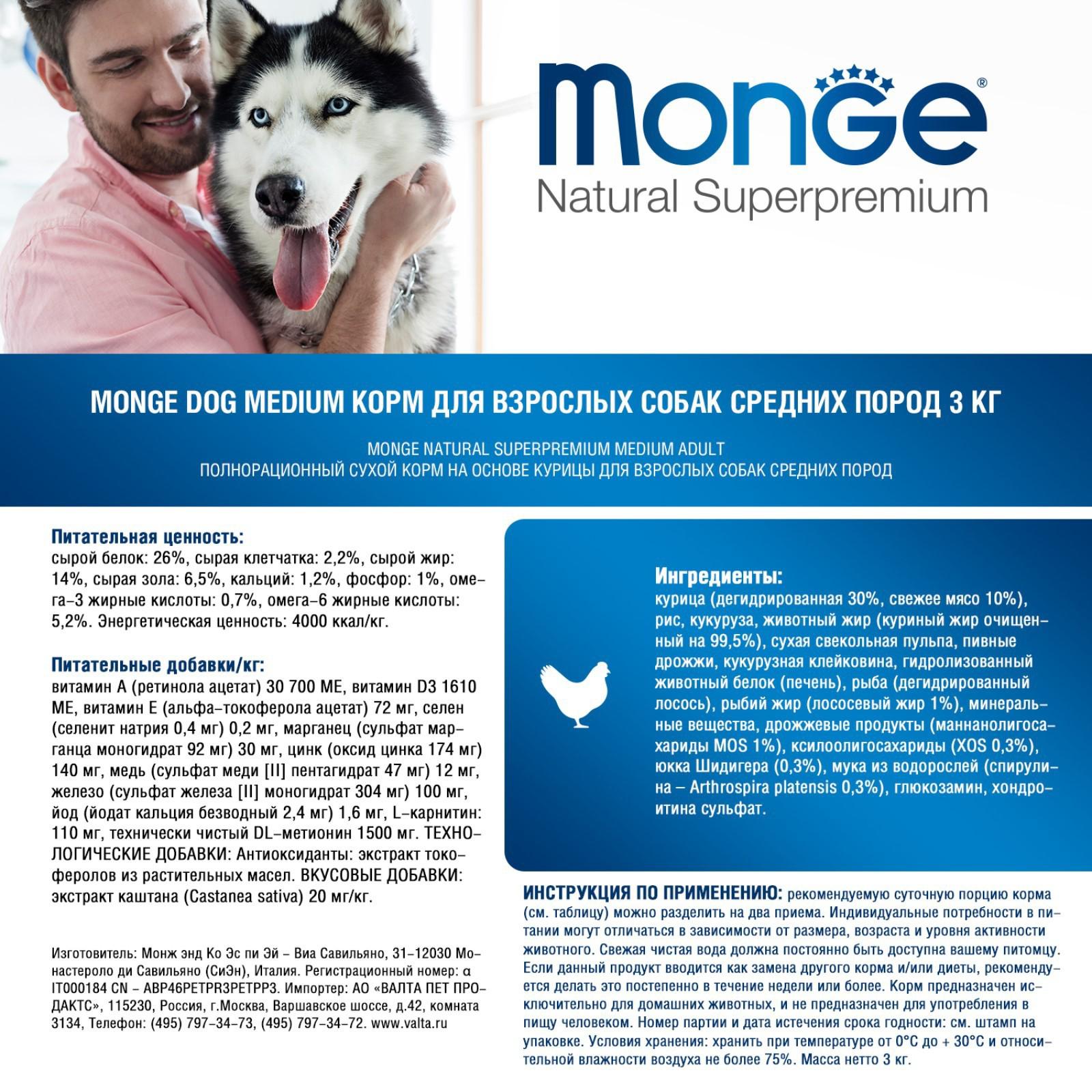 Сухой корм Monge Dog Medium для взрослых собак средних пород, 3 кг.