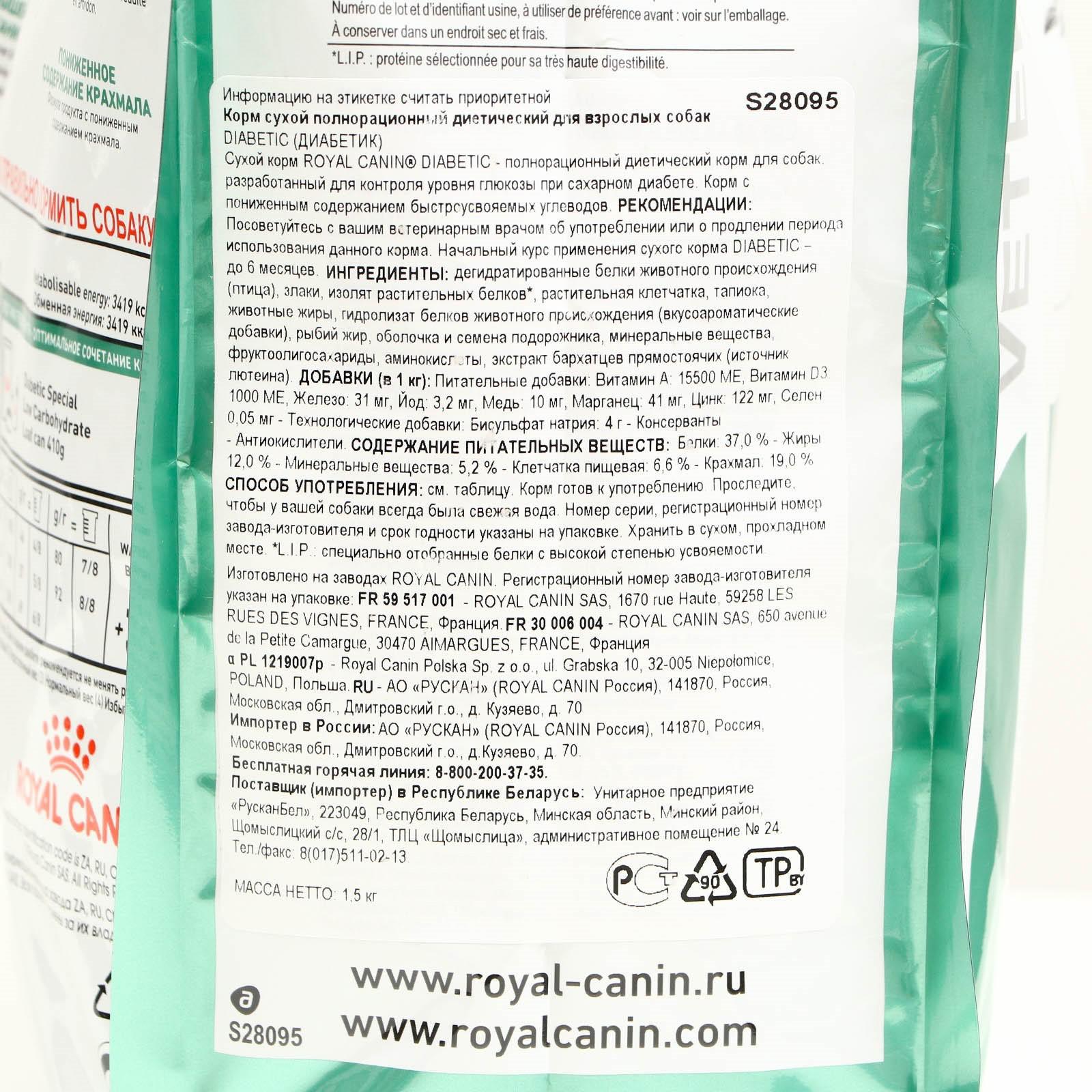 Данный корм рекомендуется для постоянного применения собакам, страдающим сахарным диабетом, на протяжении всей жизни.