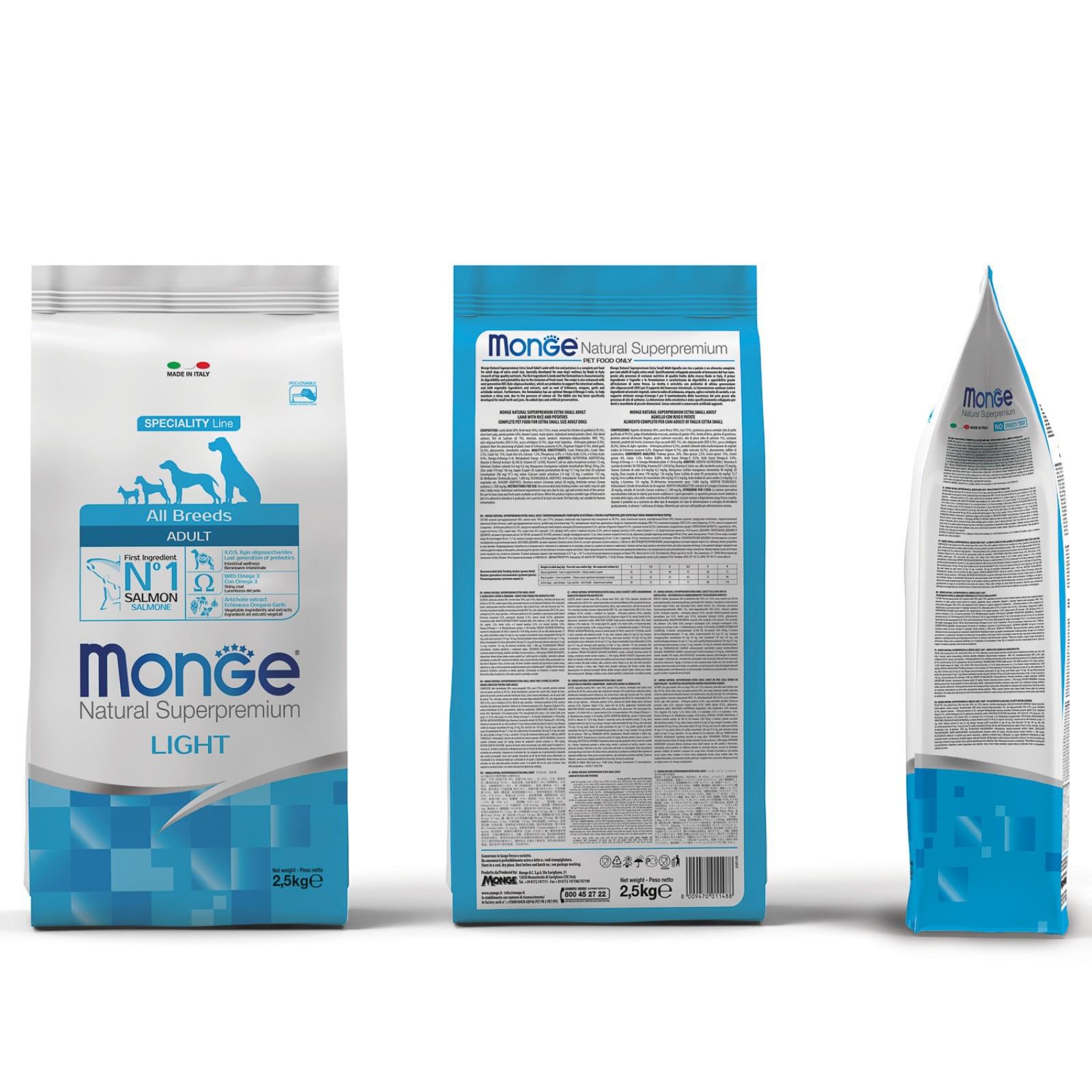 Сухой корм Monge Dog Speciality Light для собак, низкокалорийный, лосось/рис, 2,5 кг.