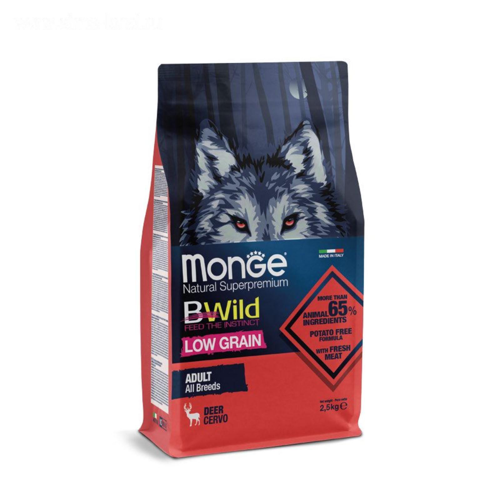 Сухой корм Monge Dog BWild LOW GRAIN низкозерновой для собак, из мяса оленя, 2,5 кг 5450053