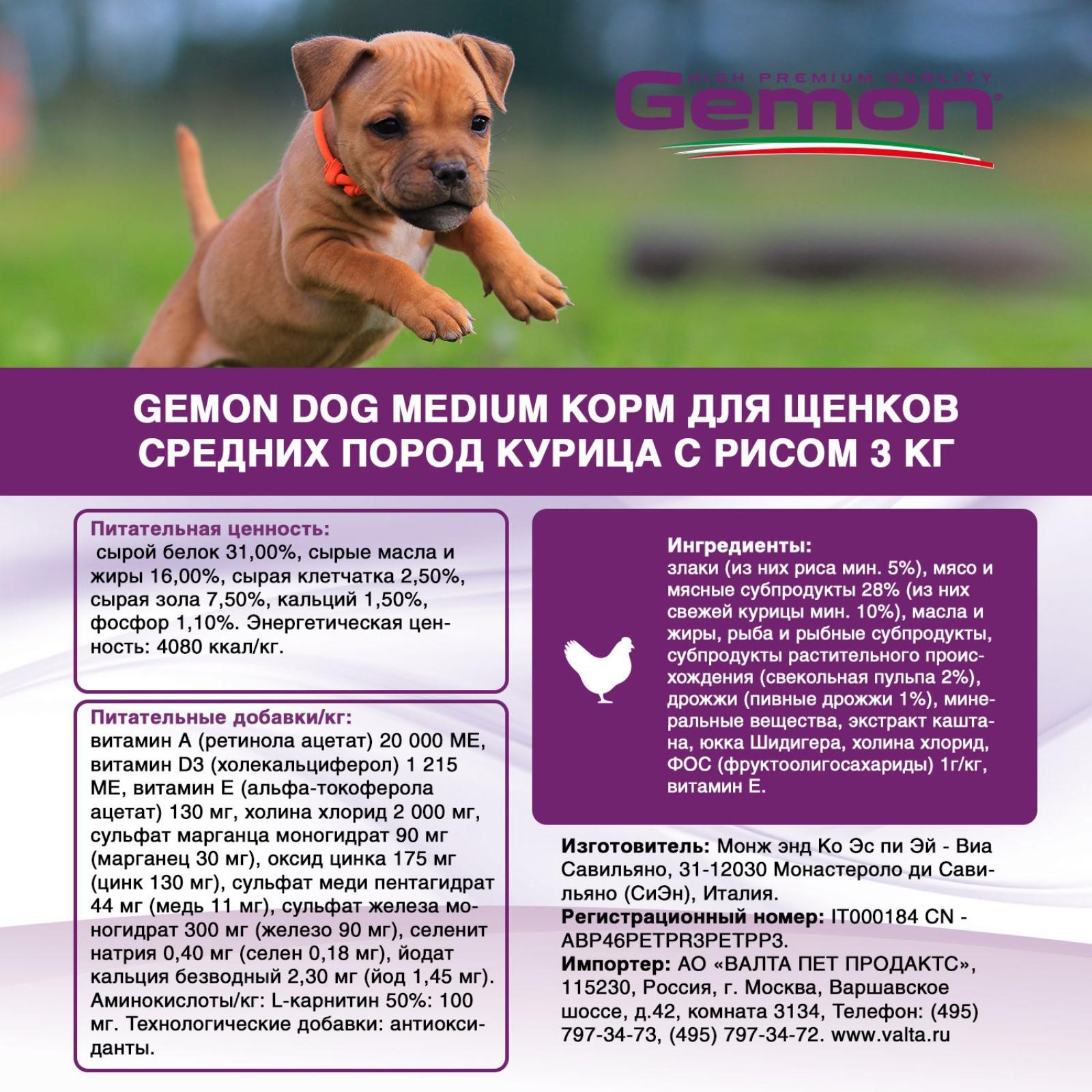 Сухой корм Gemon Dog Medium для щенков средних пород, курица с рисом, 3 кг. 1684133