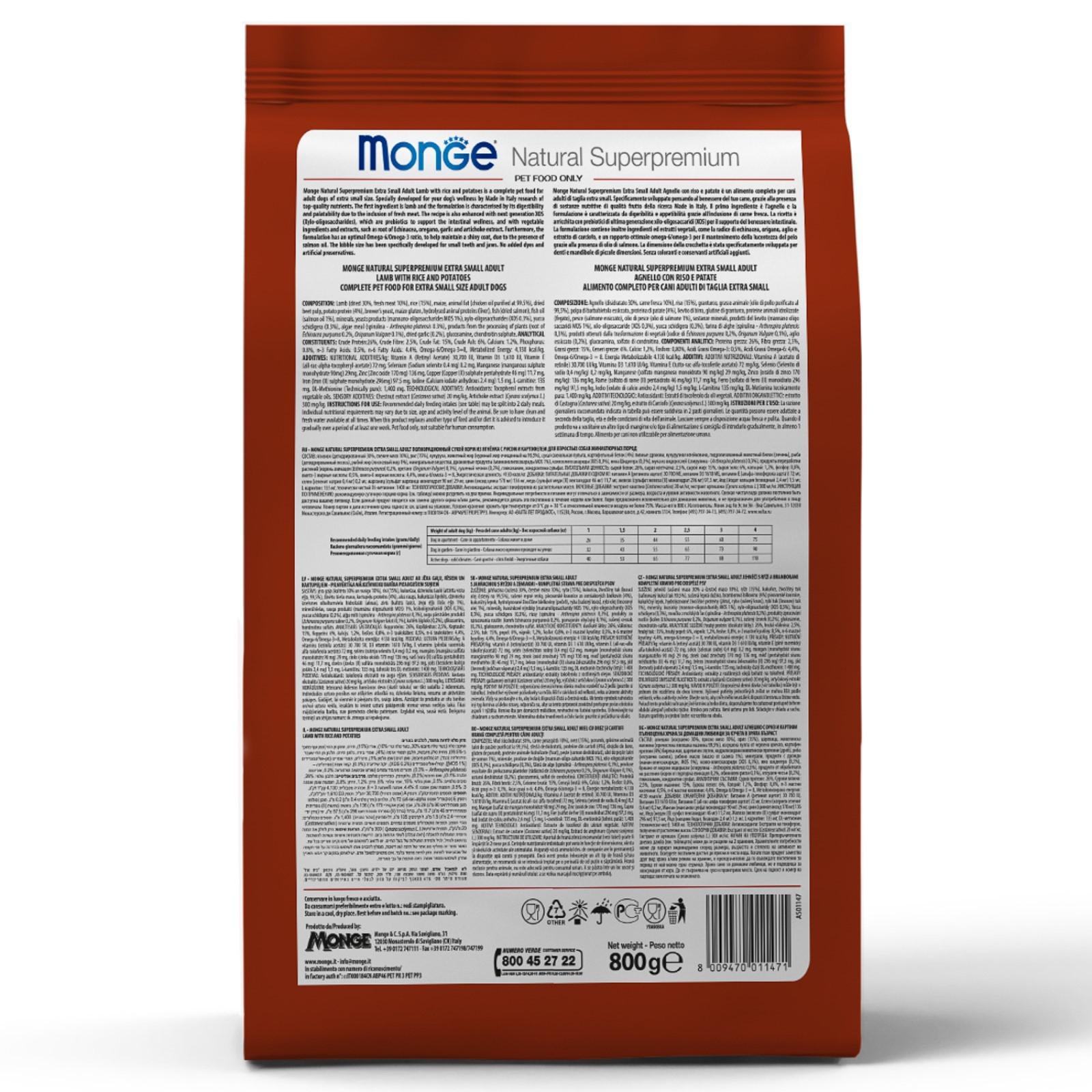 Сухой корм Monge Dog Speciality Extra Small для собак, ягненок/рис/картофель, 800 г.