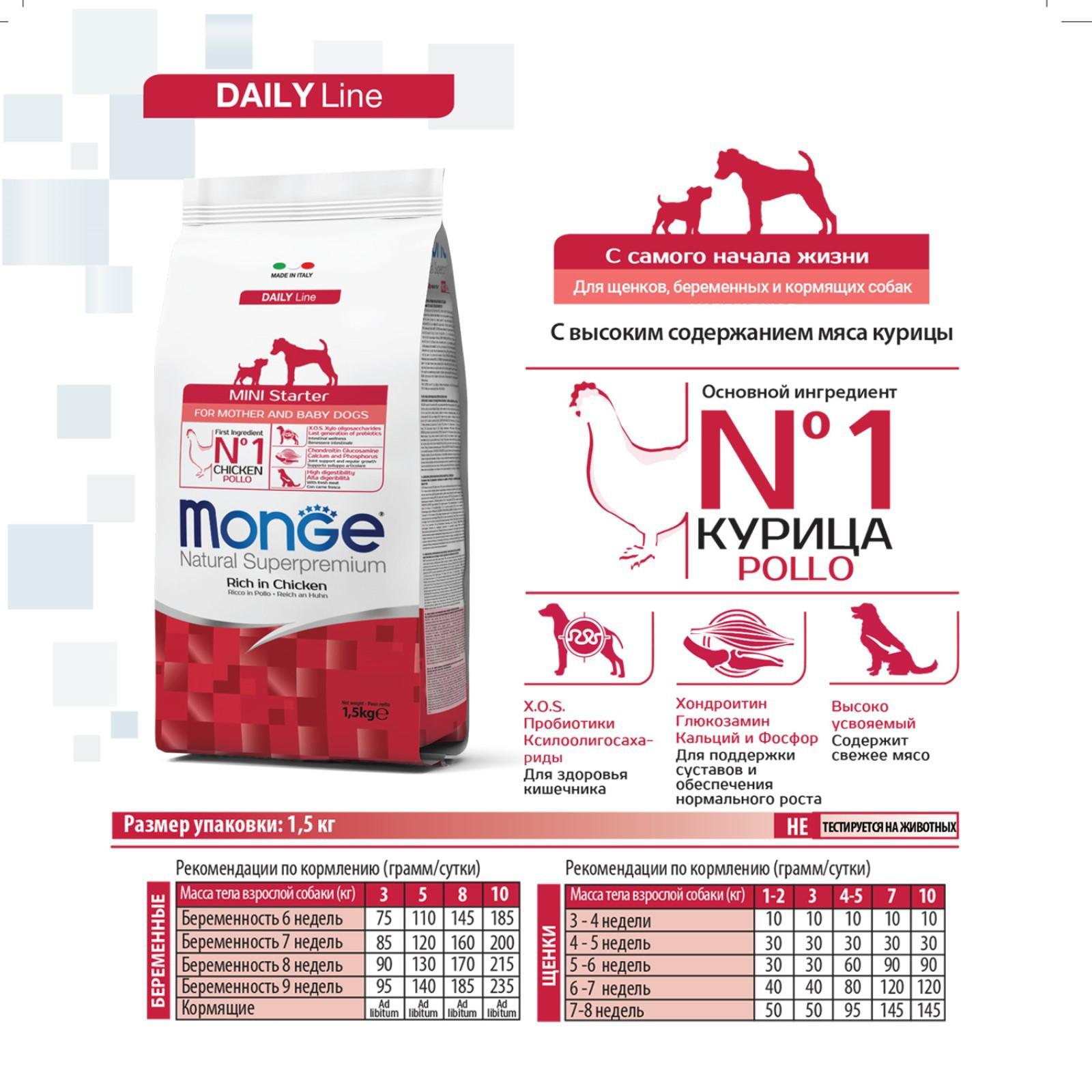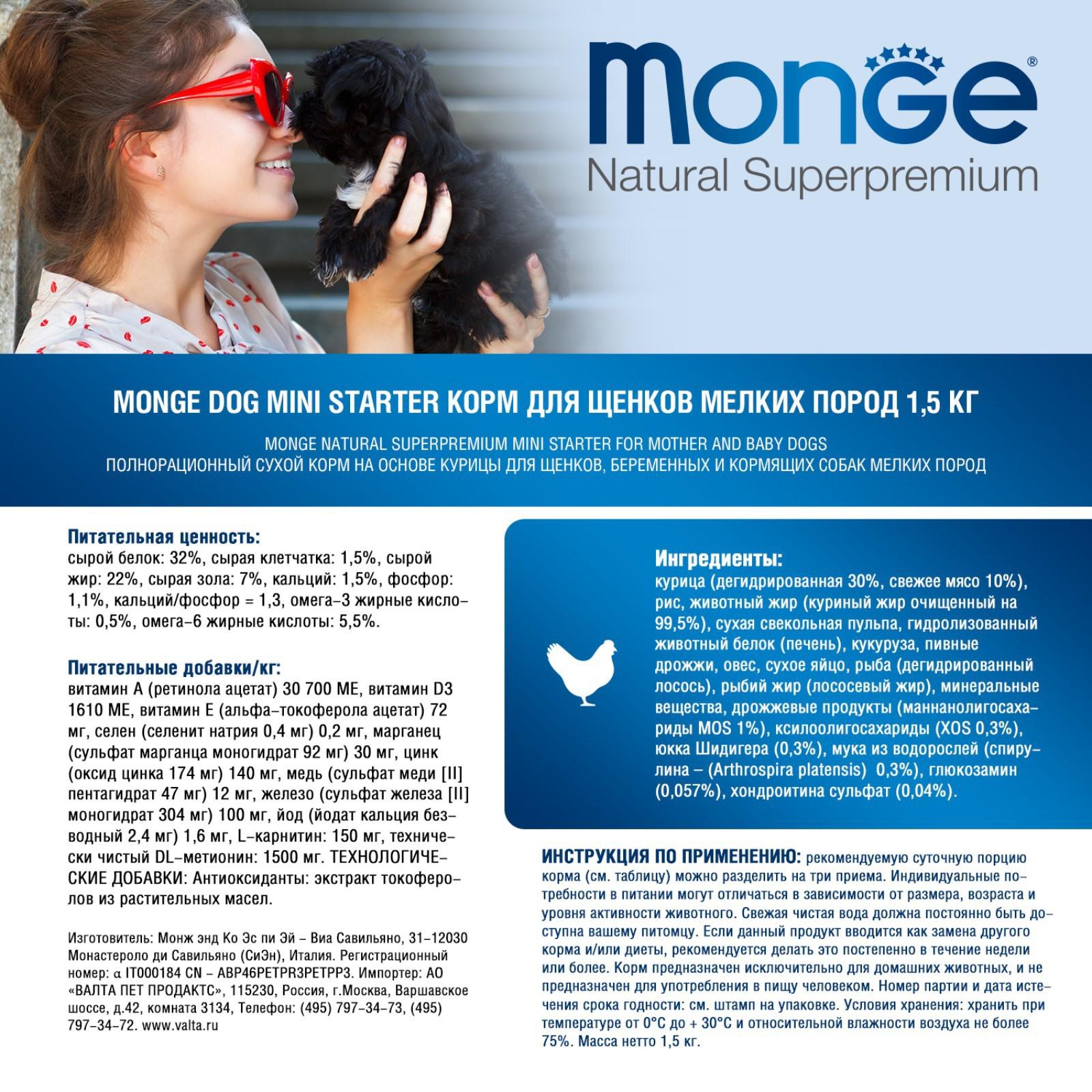 Сухой корм Monge Dog Mini Starter для щенков мелких пород, 1,5 кг.