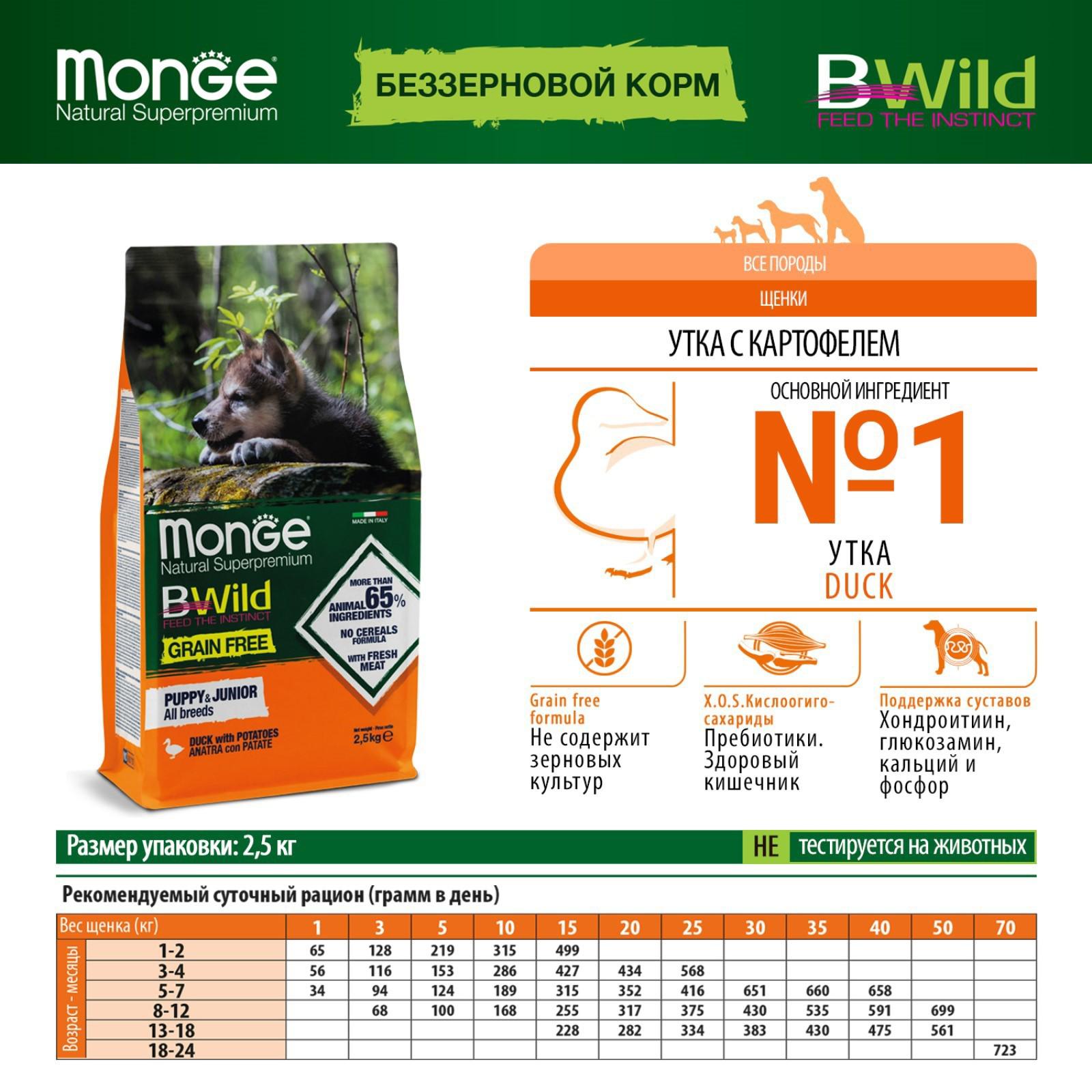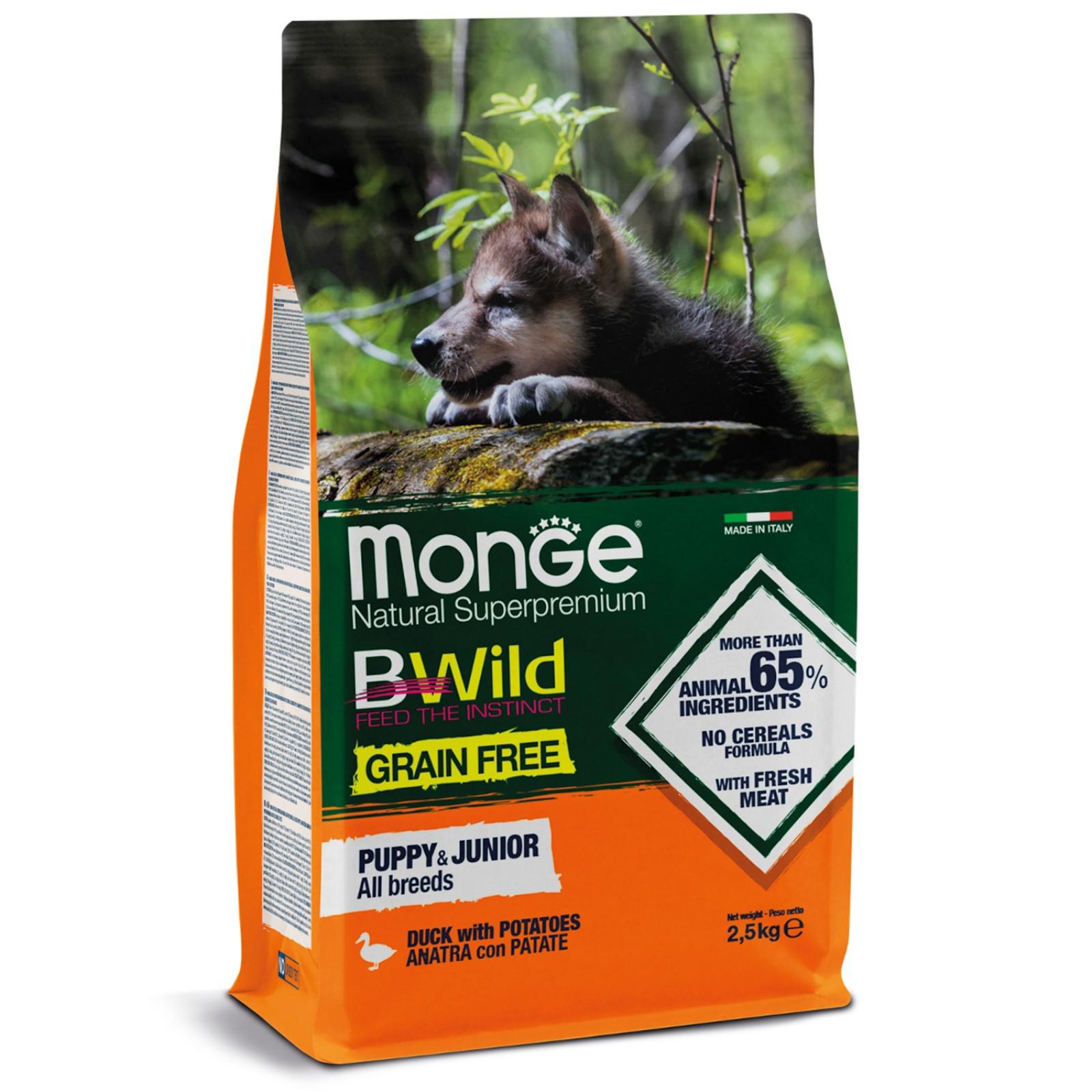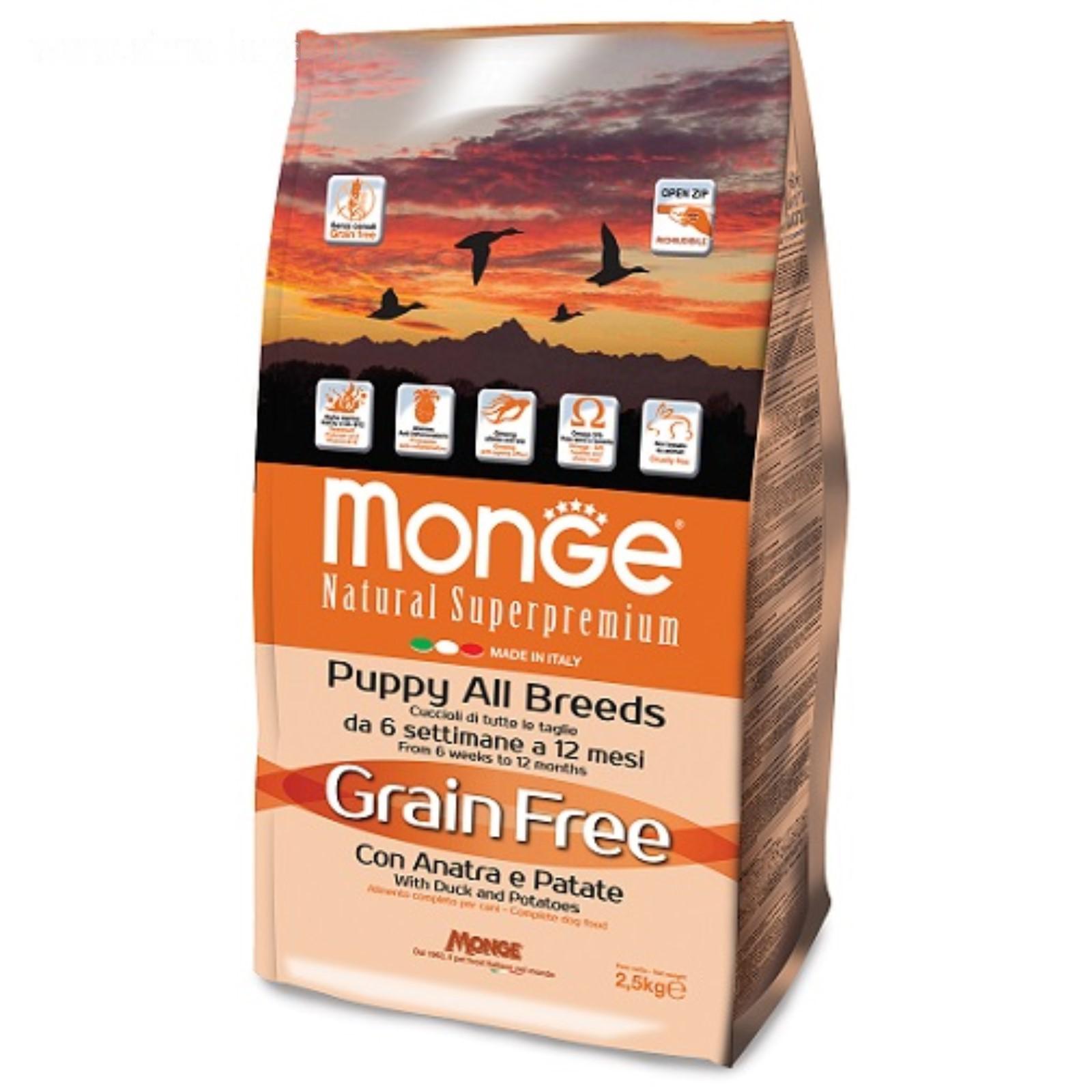 Сухой корм Monge Dog GRAIN FREE для щенков, утка/картофель, беззерновой, 2.5 кг