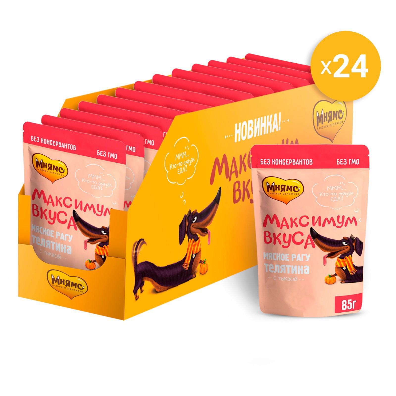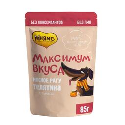 Влажный корм "Мнямс" "Максимум вкуса" для собак, мясное рагу с телятиной и тыквой, 85 г