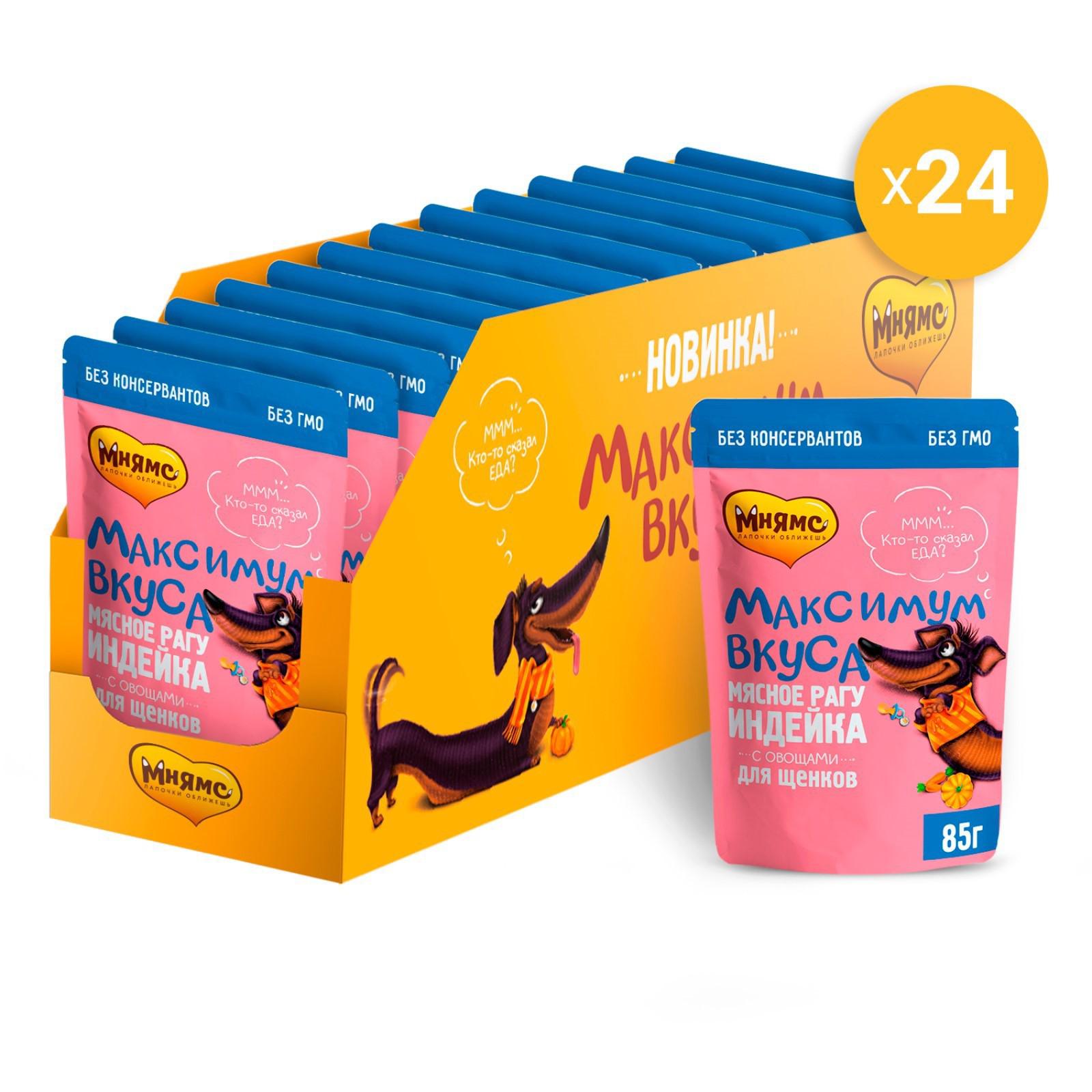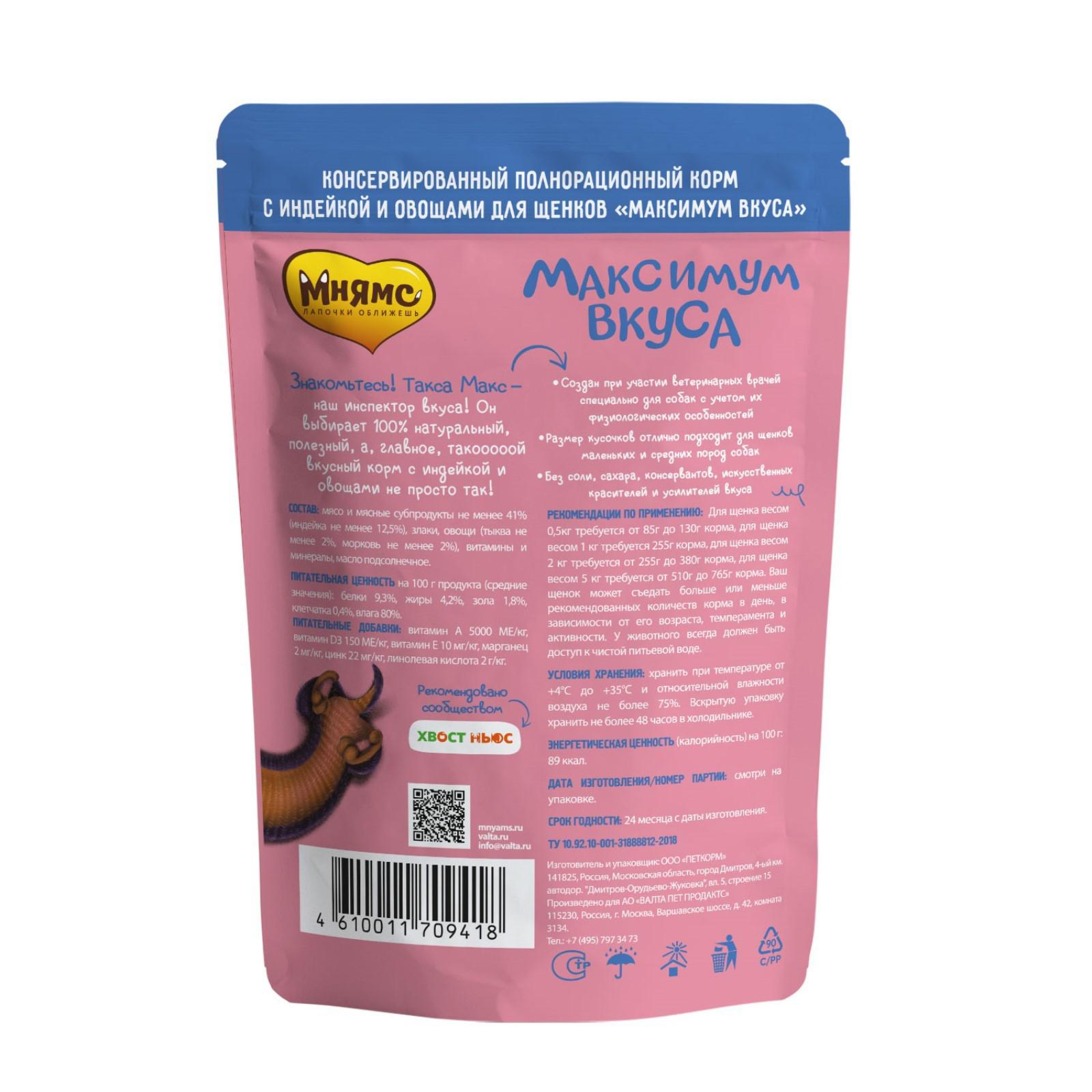 Влажный корм "Мнямс" "Максимум вкуса" для щенков, мясное рагу с индейкой и овощами, 85 г