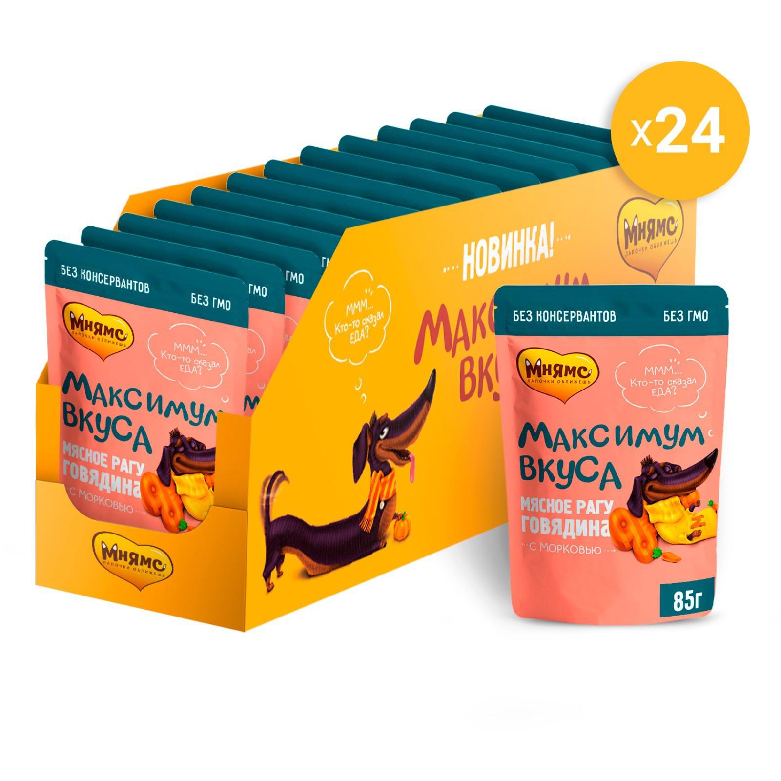 Влажный корм "Мнямс" "Максимум вкуса" для собак, мясное рагу с говядиной и морковью, 85 г