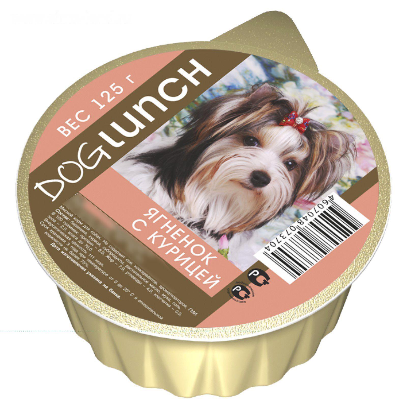 Консервы "Дог ланч" для собак, крем-суфле с ягненок с курицей, ламист., 125 г.