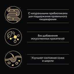 Состав товара: мясо и продукты его переработки, экстракты растительного белка, рыба и продукты ее переработки (из которых лосось 4%), продукты переработки растительного сырья, растительное масло, минеральные вещества, загустители, сахара, витамины, аминокислоты, красители.