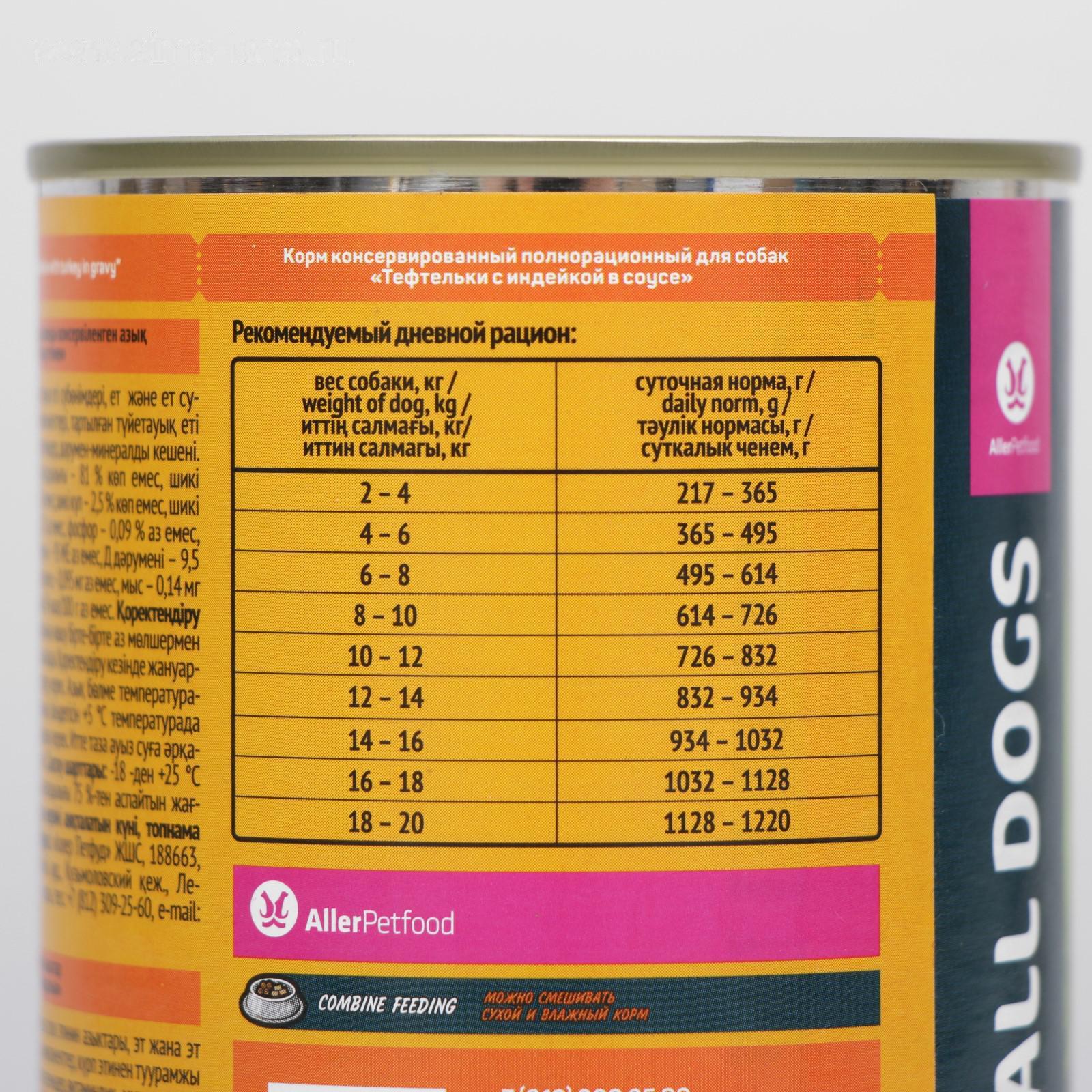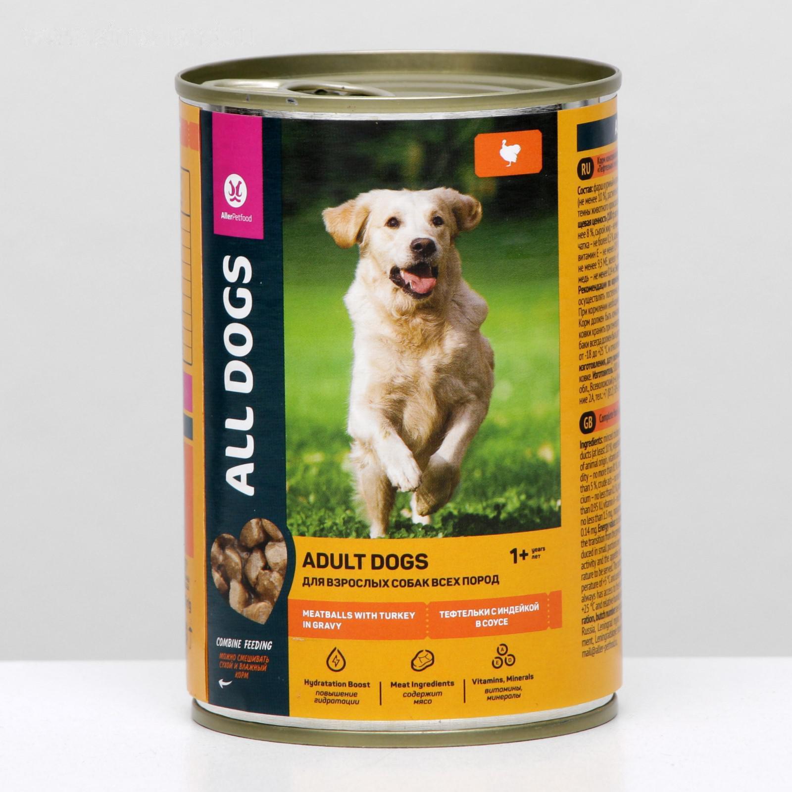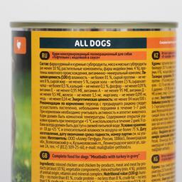 Влажный корм All dogs для собак, тефтельки с индейкой в соусе, банка,415 г 5666781