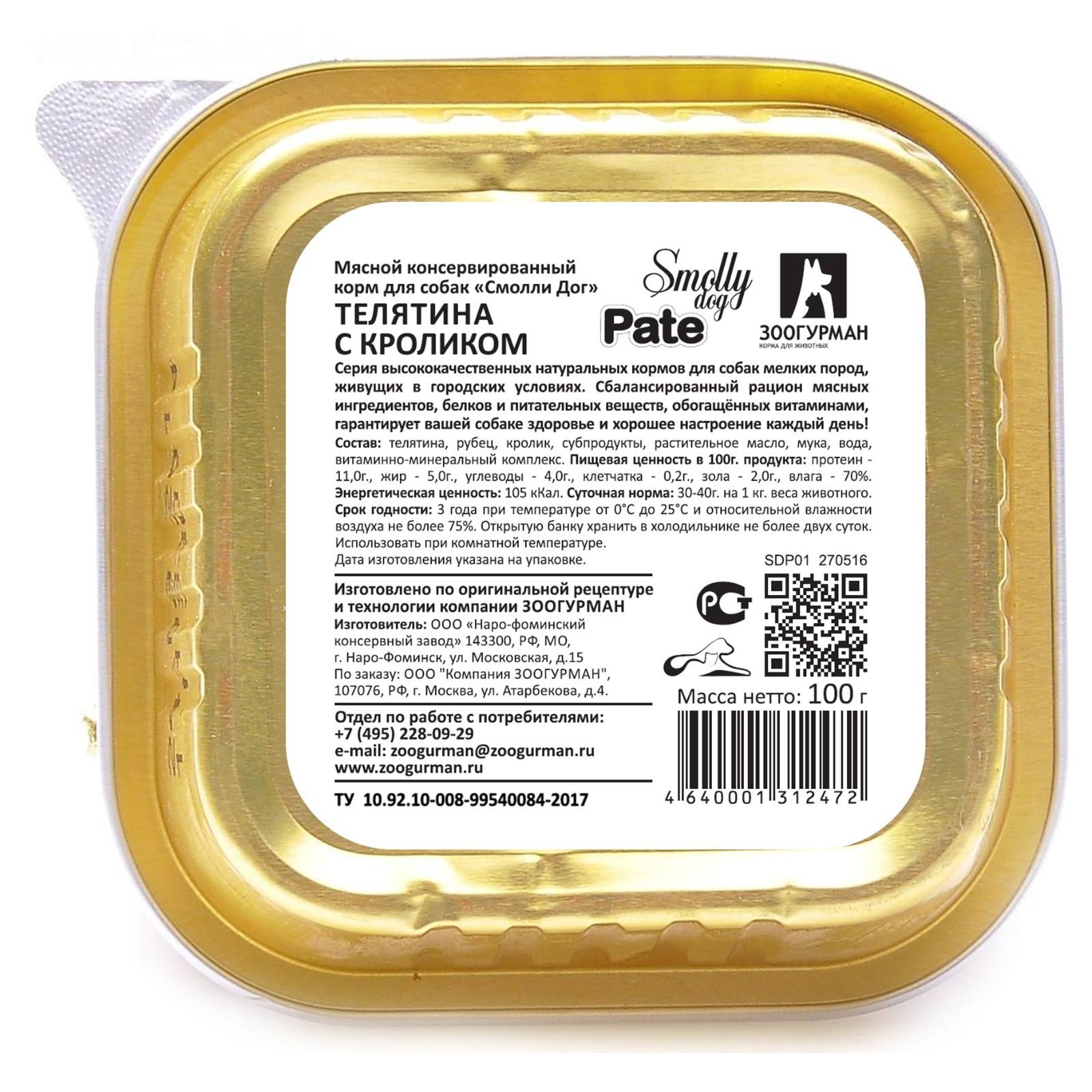 Влажный корм "Зоогурман" Смолли Дог для собак, патэ телятина/кролик, ламистер, 100 г