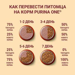 Рекомендации по приготовлению/использованию: Если вы предлагаете Вашей собаке корм Purina ONE® впервые, рекомендуем переводить на новый корм постепенно. В течение 7 дней уменьшайте исходный рацион, увеличивая дозу корма Purina ONE®. Это позволит пищеварительной системе Вашей собаки лучше адаптироваться к изменению корма.
