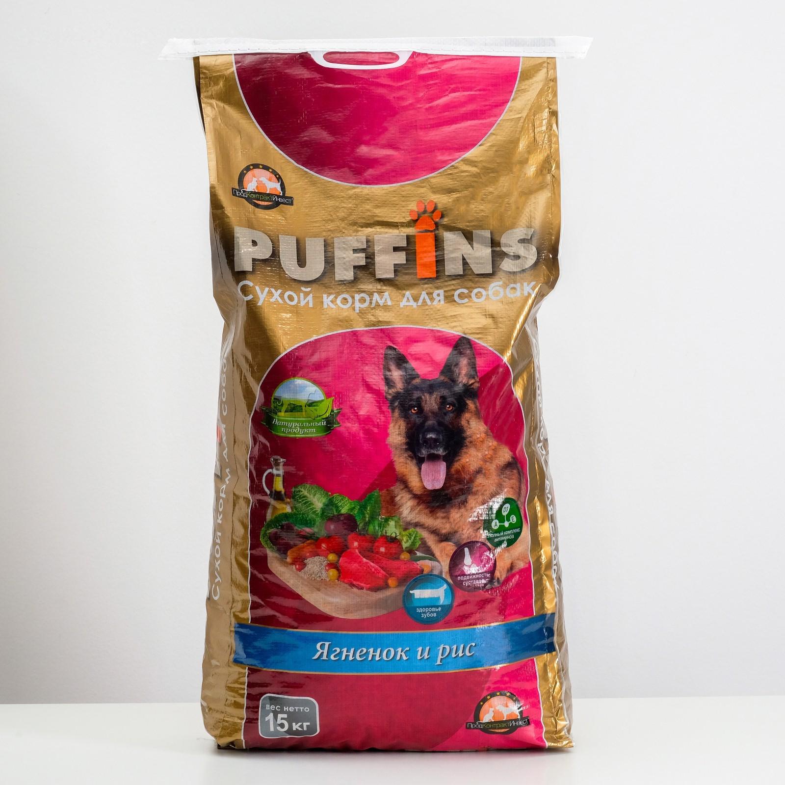 Сухой корм Puffins для собак, ягненок и рис, 15 кг