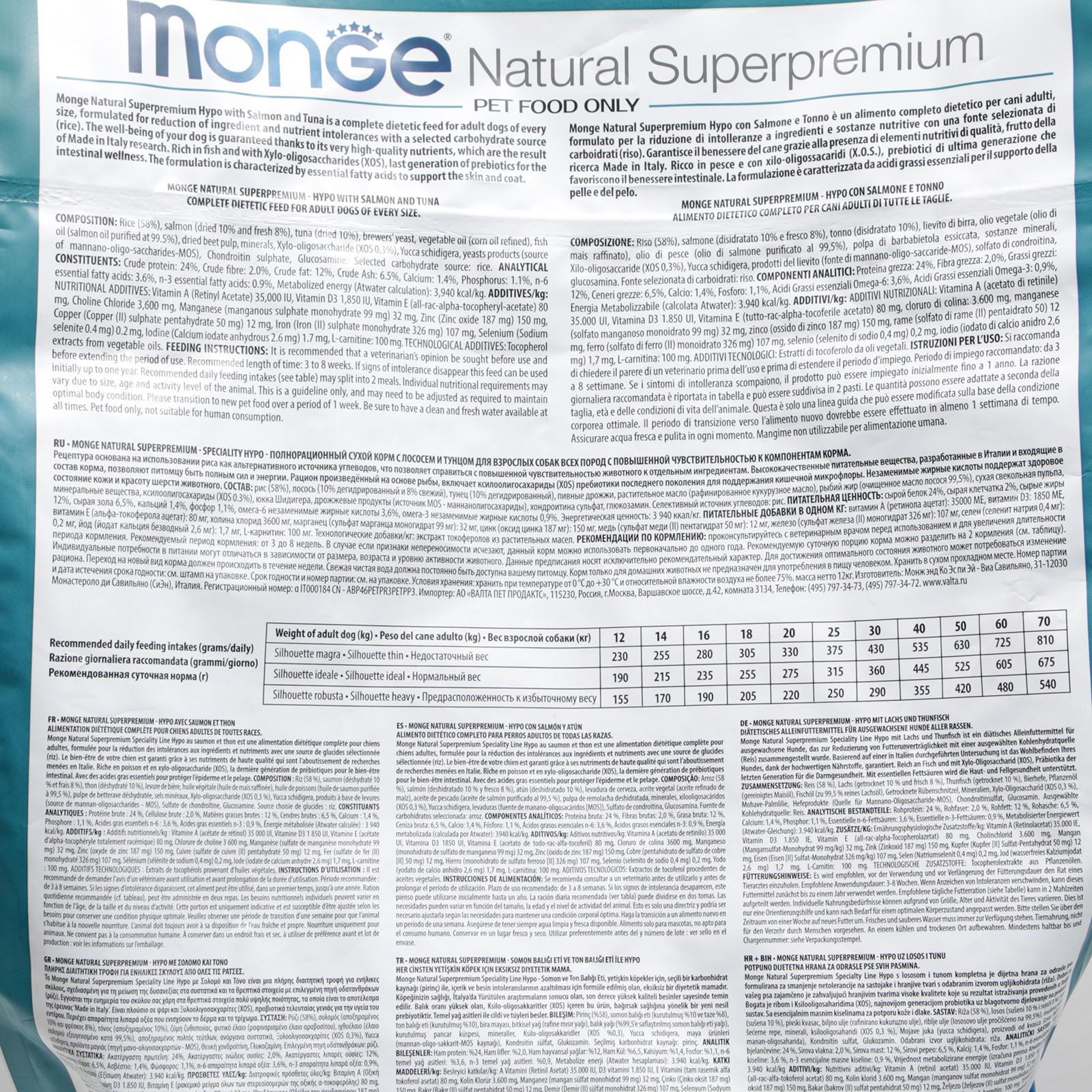 Сухой корм Monge Dog Speciality Hypoallergenic для собак, лосось/тунец, 12 кг 4296663