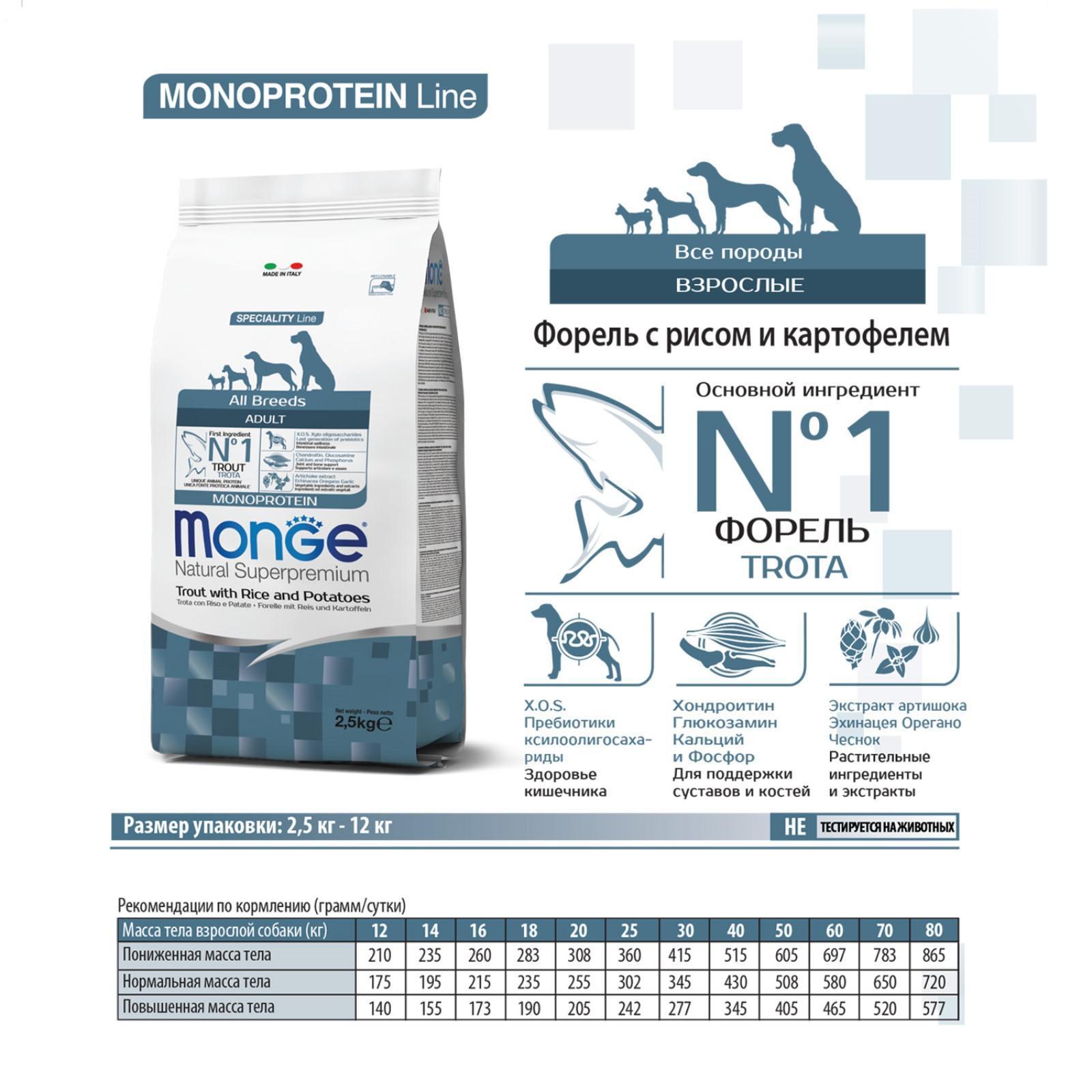 Сухой корм Monge Dog Speciality Line Monoprotein для собак, форель/рис/картофель, 12 кг