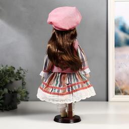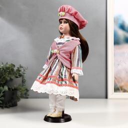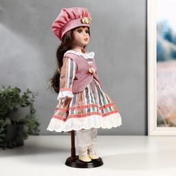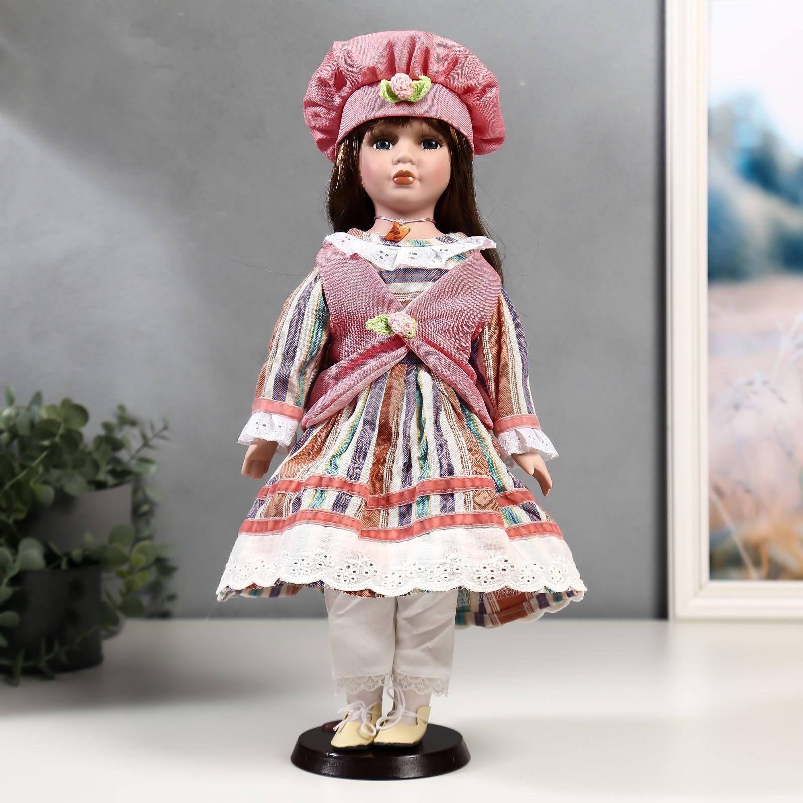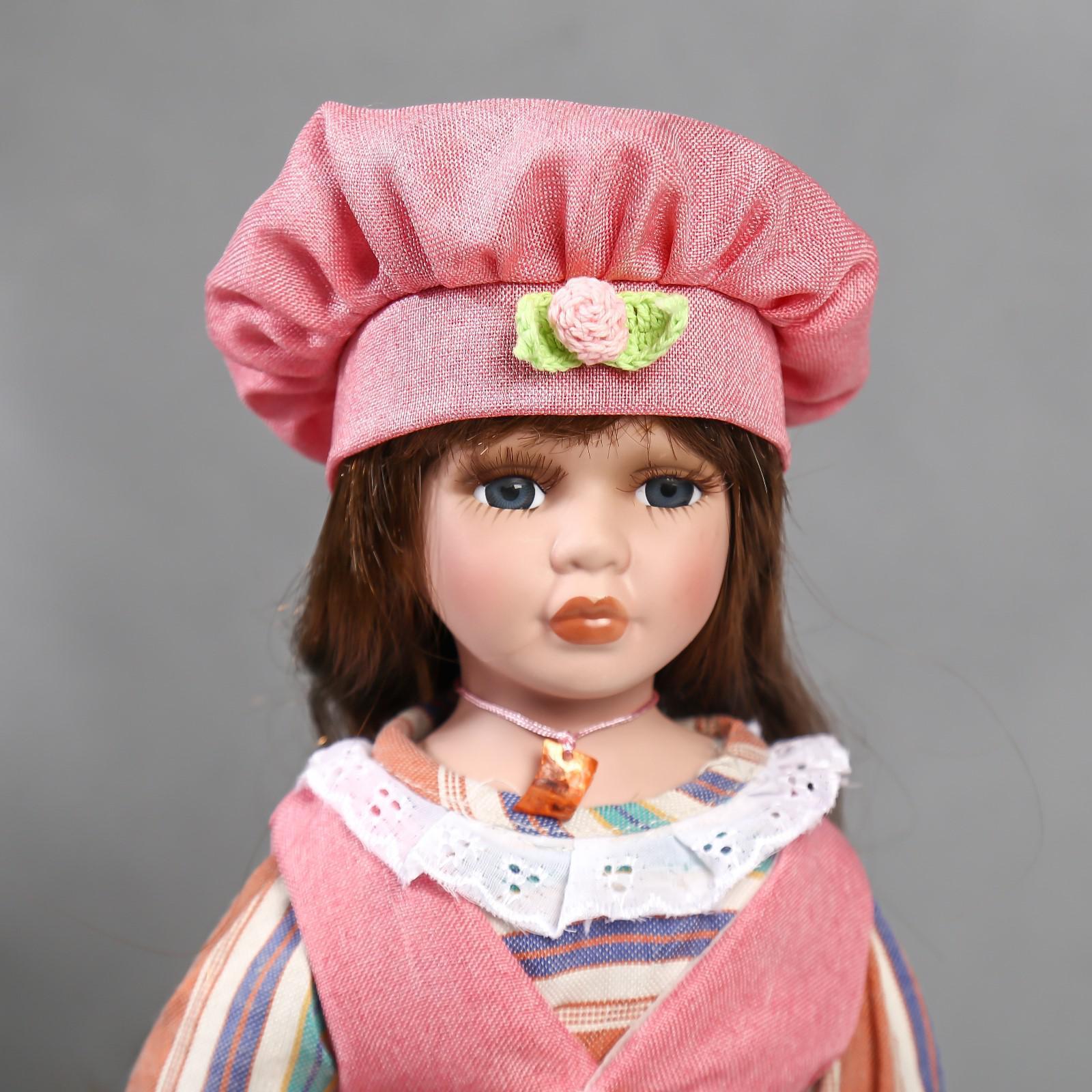 Кукла коллекционная керамика "Катя в платье в полоску и розовом жилете" 40 см