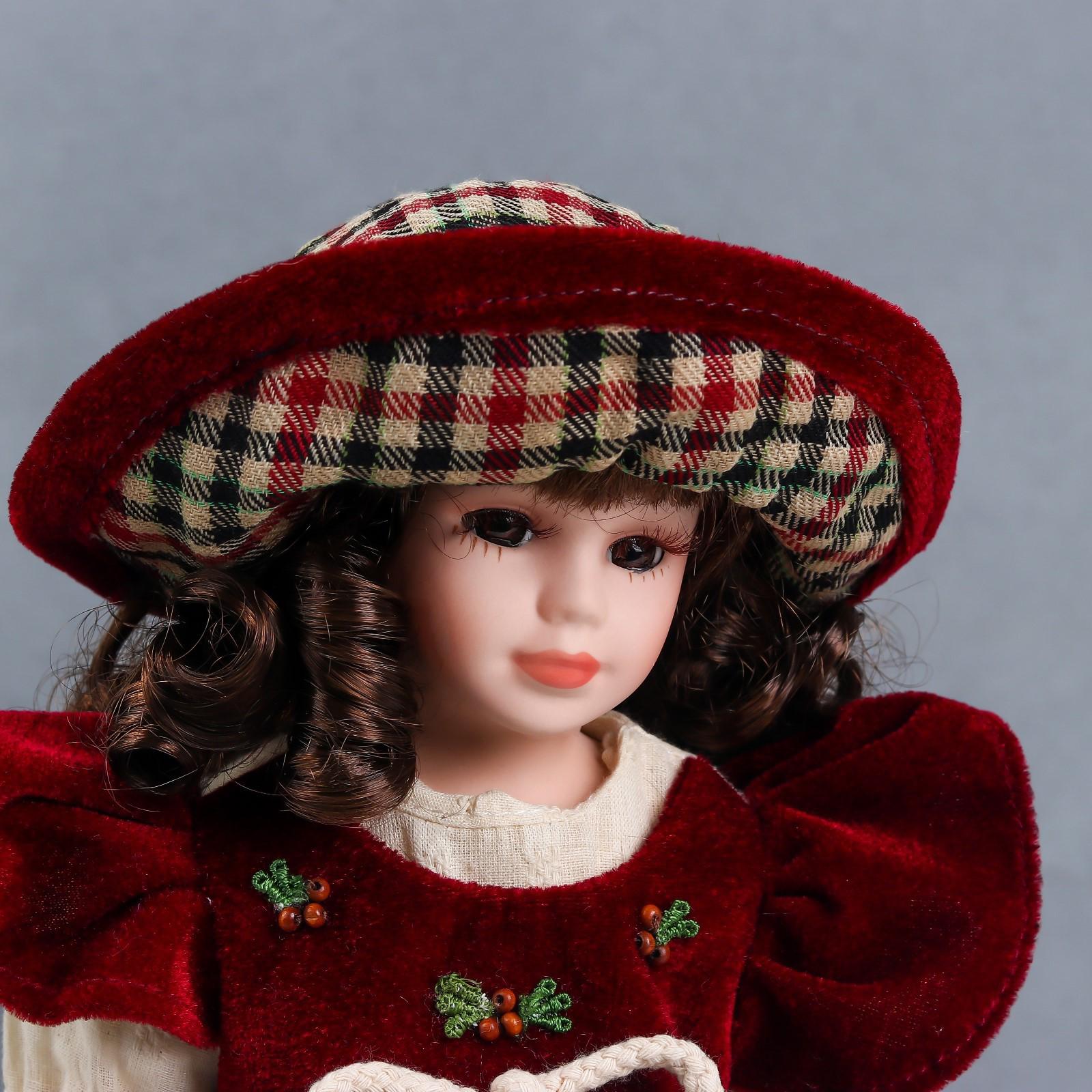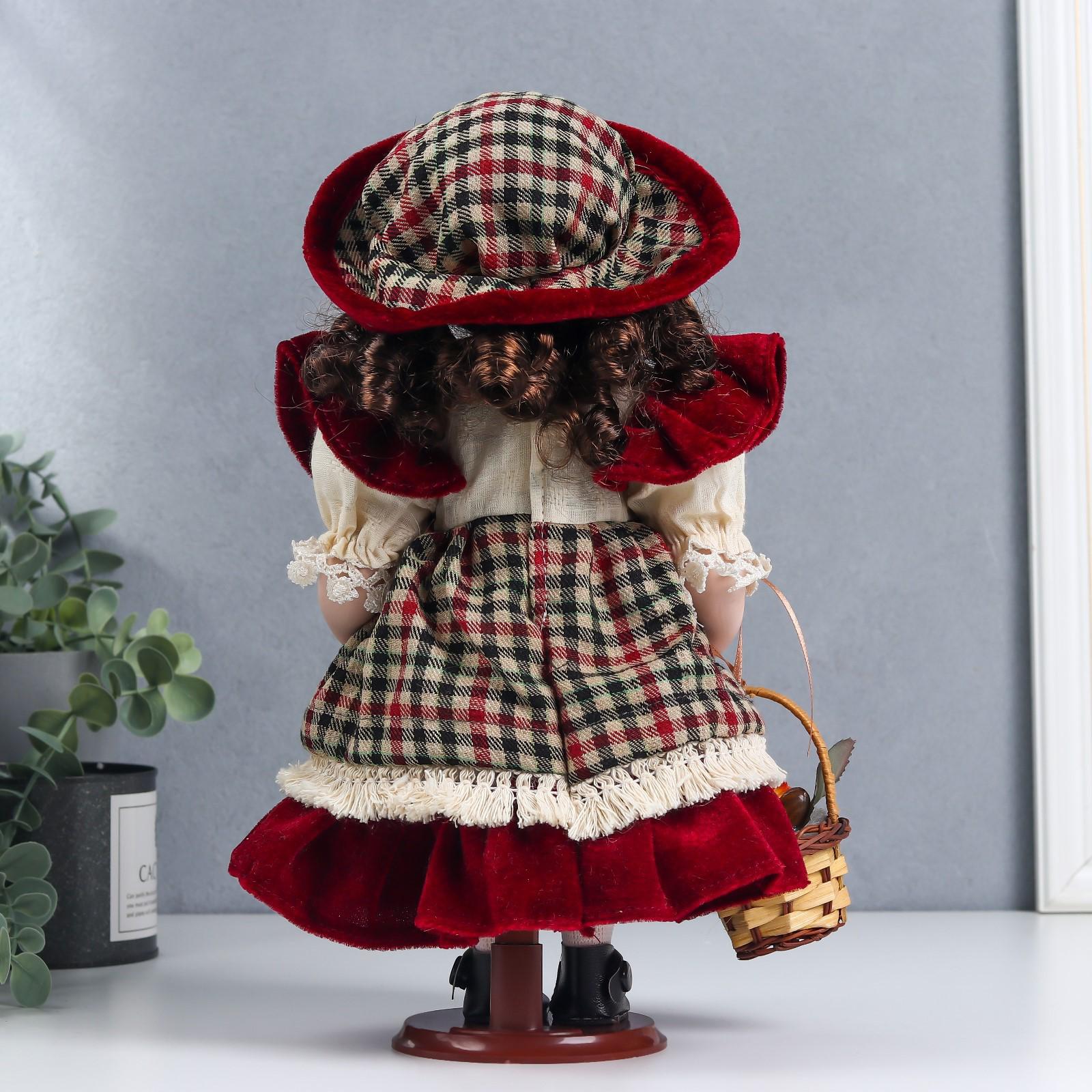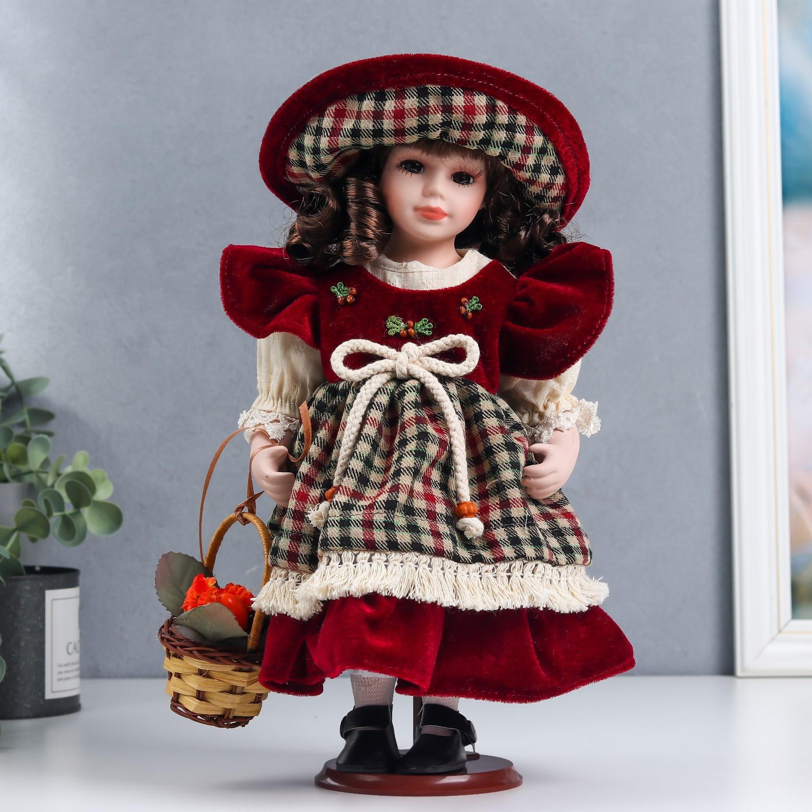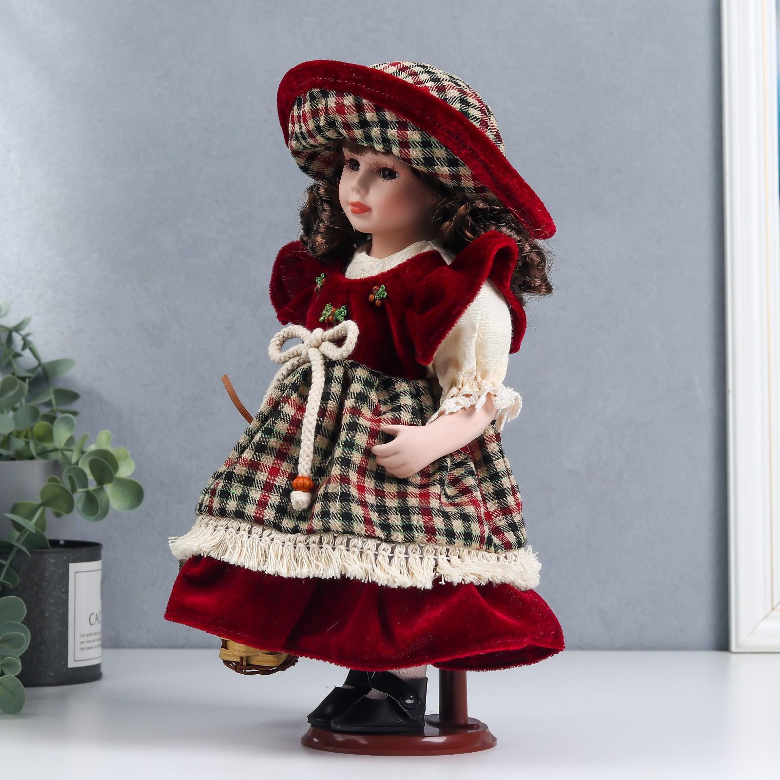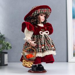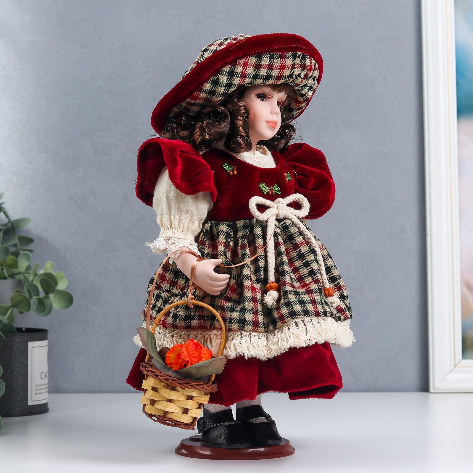 Кукла коллекционная керамика "Марина в платье с бархатом в клетку, с корзиной" 30 см 6260911