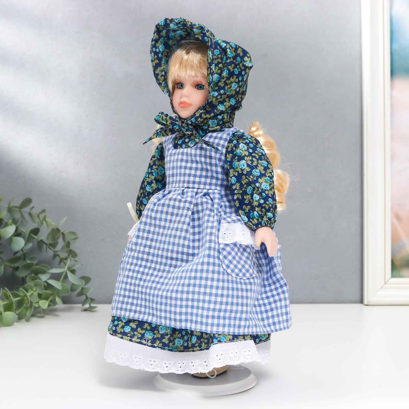 Кукла коллекционная керамика "Маруся в синем цветочном платье и косынке" 30 см