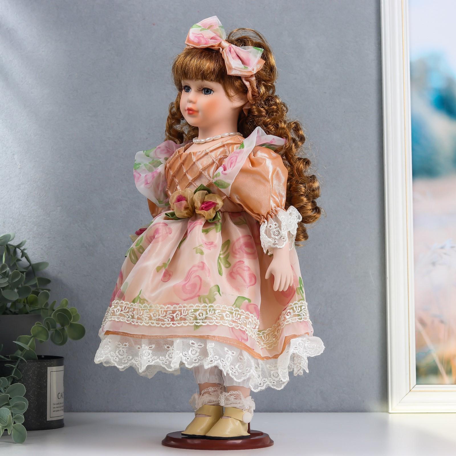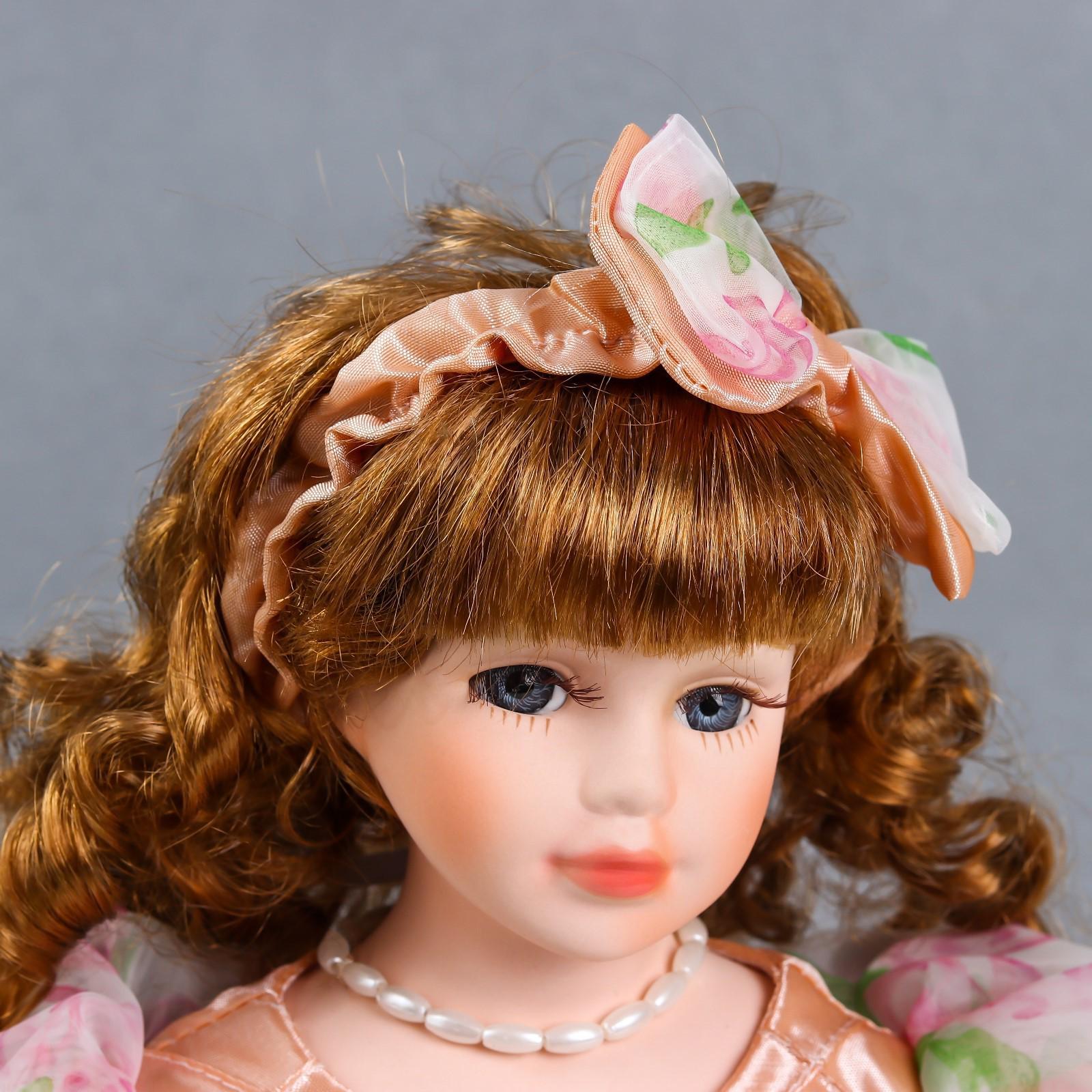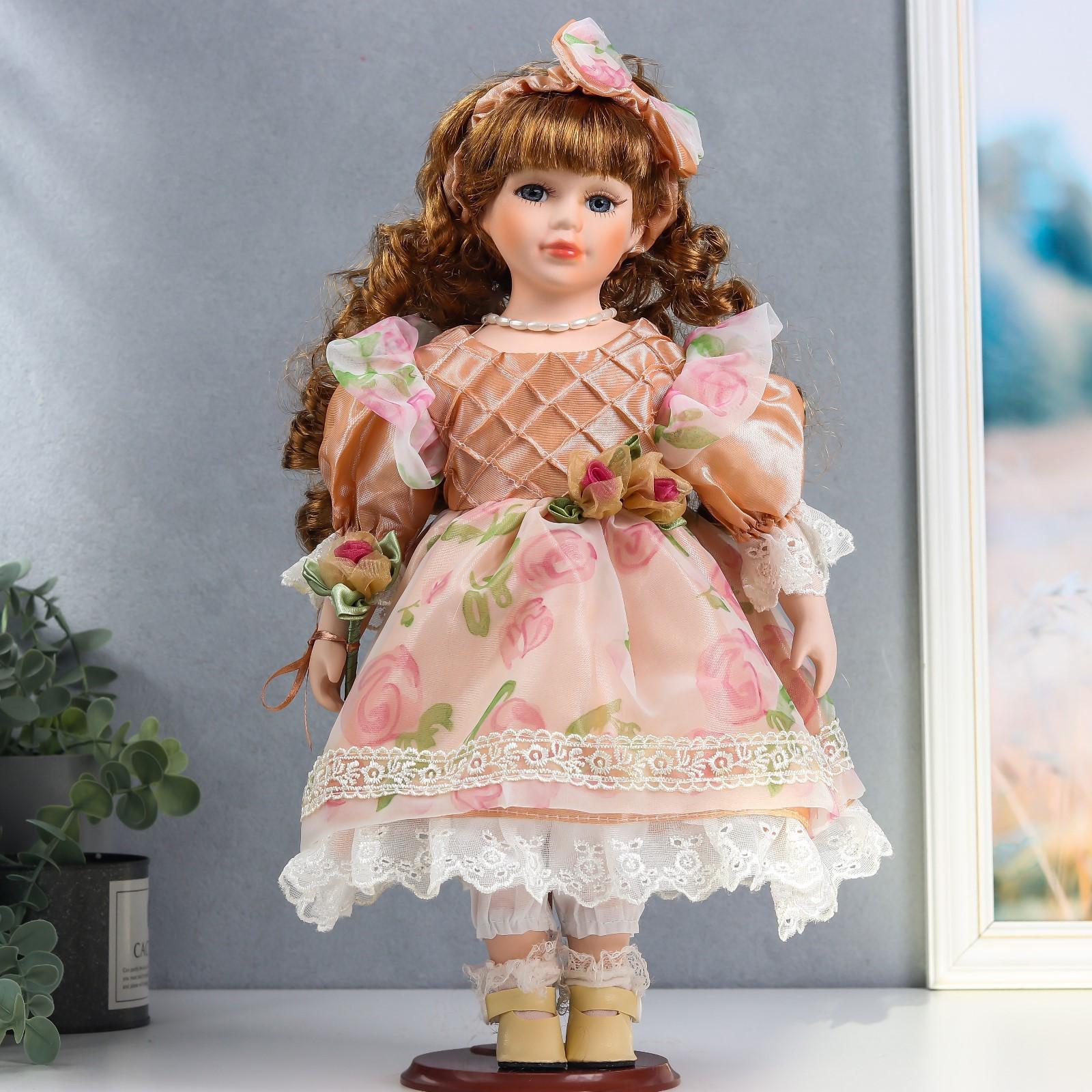 Кукла коллекционная керамика "Регина в карамельном платье, с цветком" 40 см