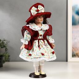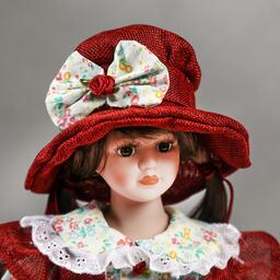 Кукла коллекционная керамика "Вероника в цветочном платье и красном пальто" 40 см
