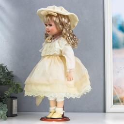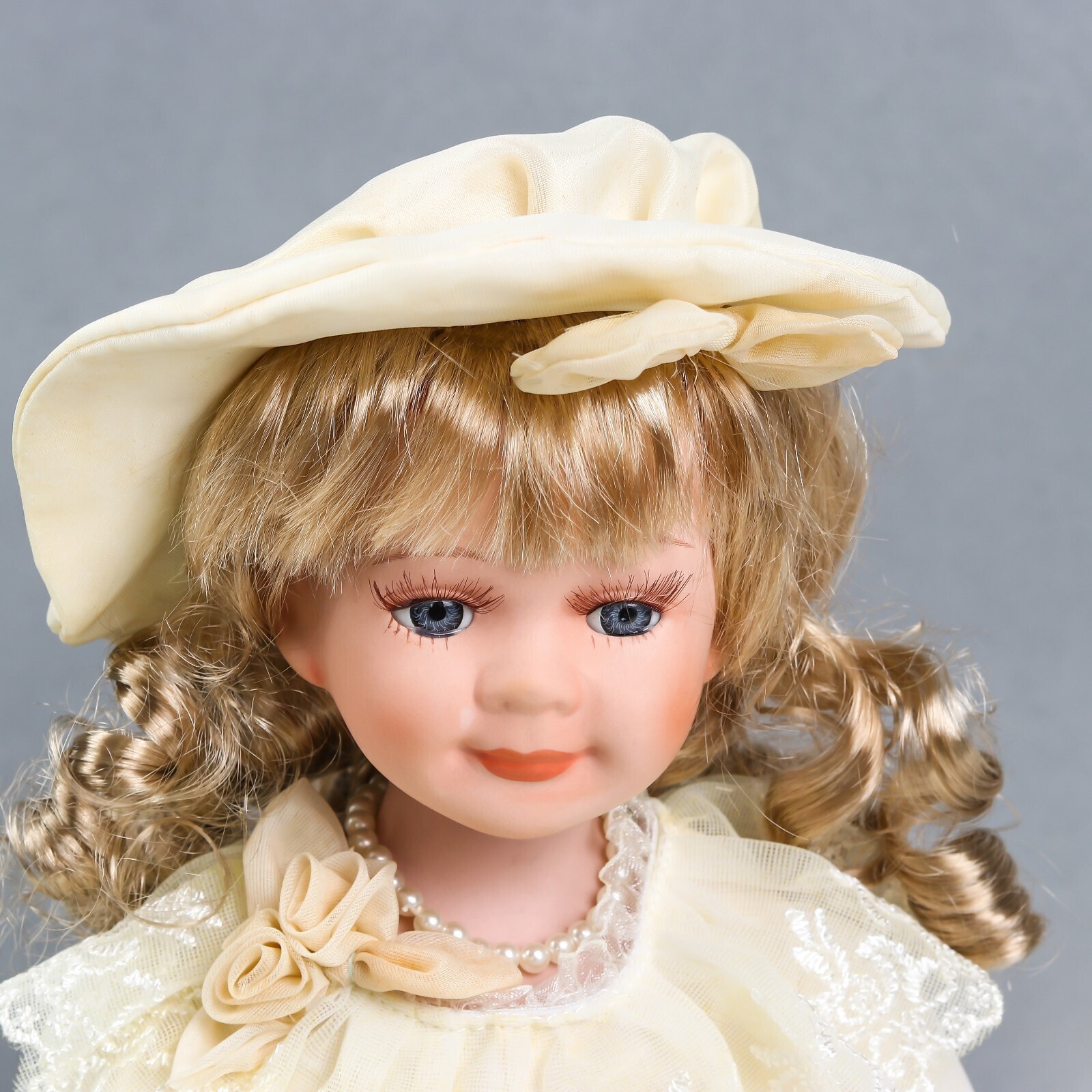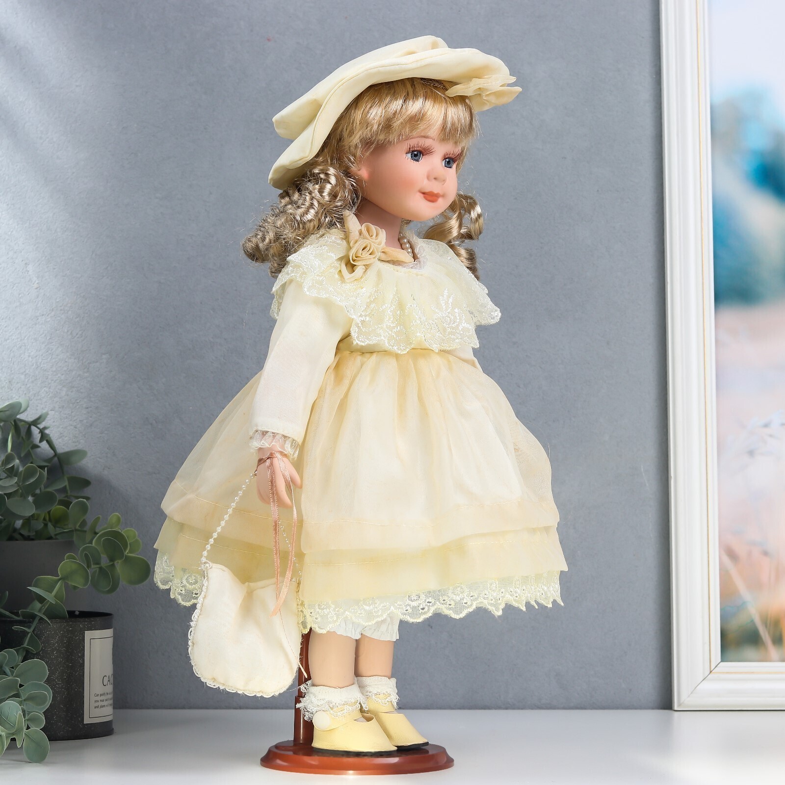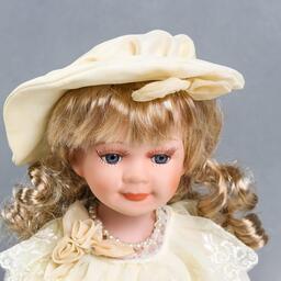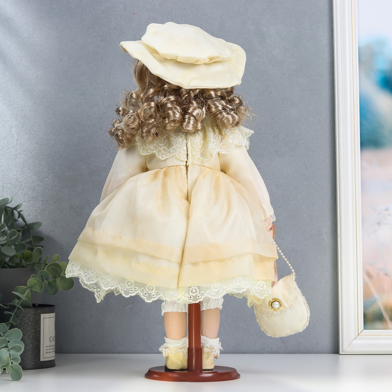 Кукла коллекционная керамика "Таечка в сливочном платье с кружевом, с сумкой" 40 см