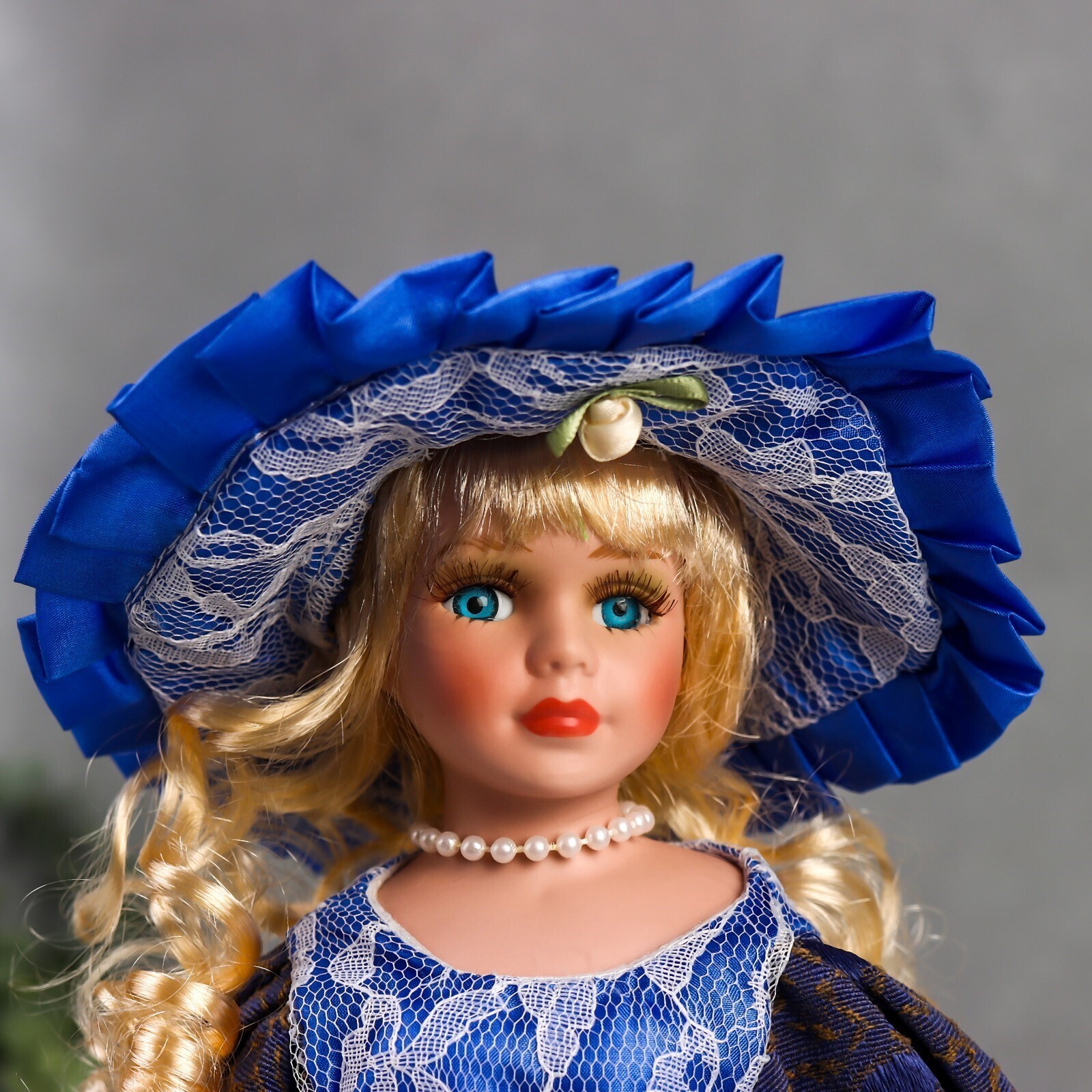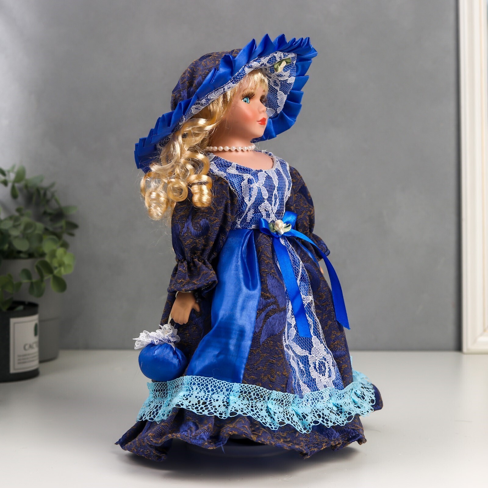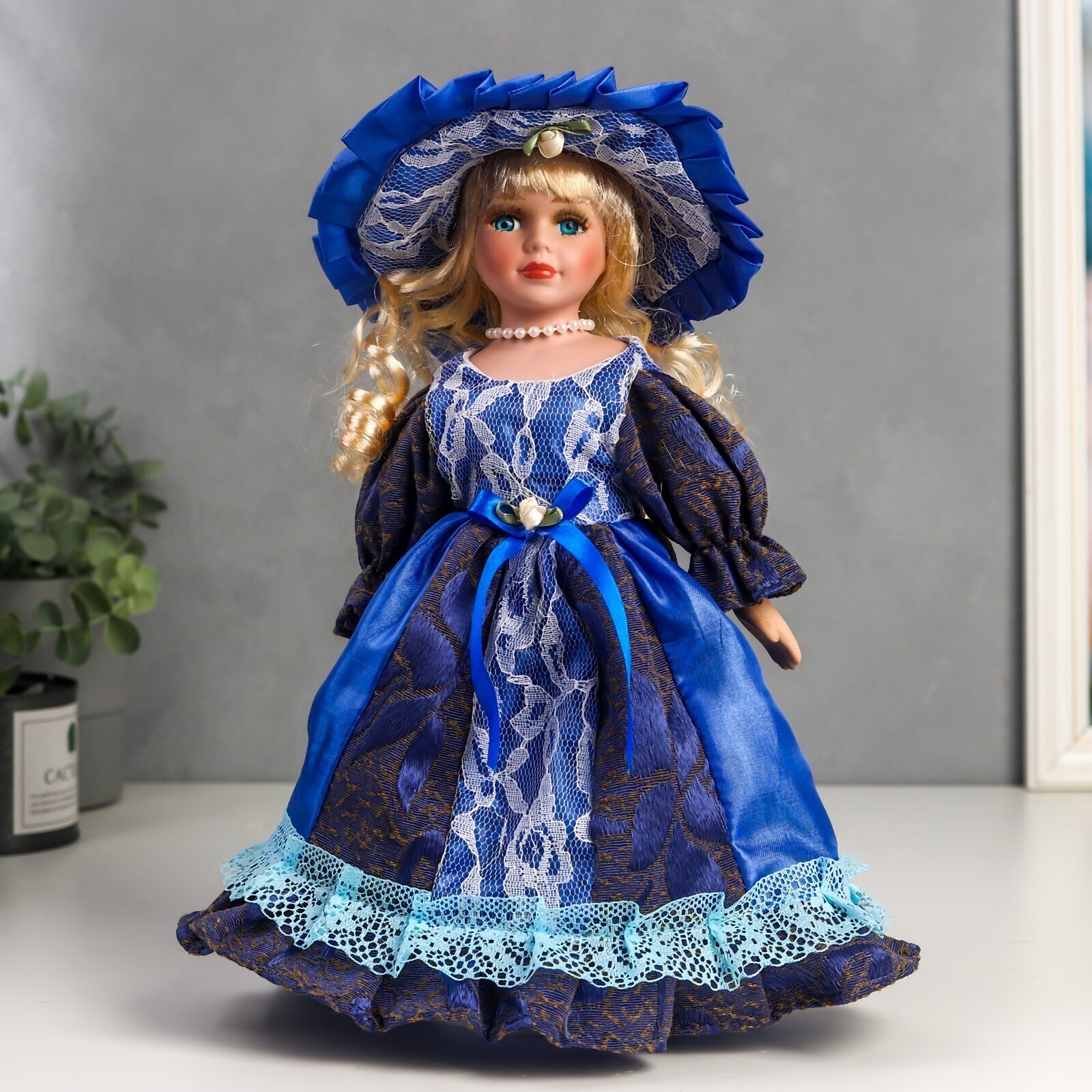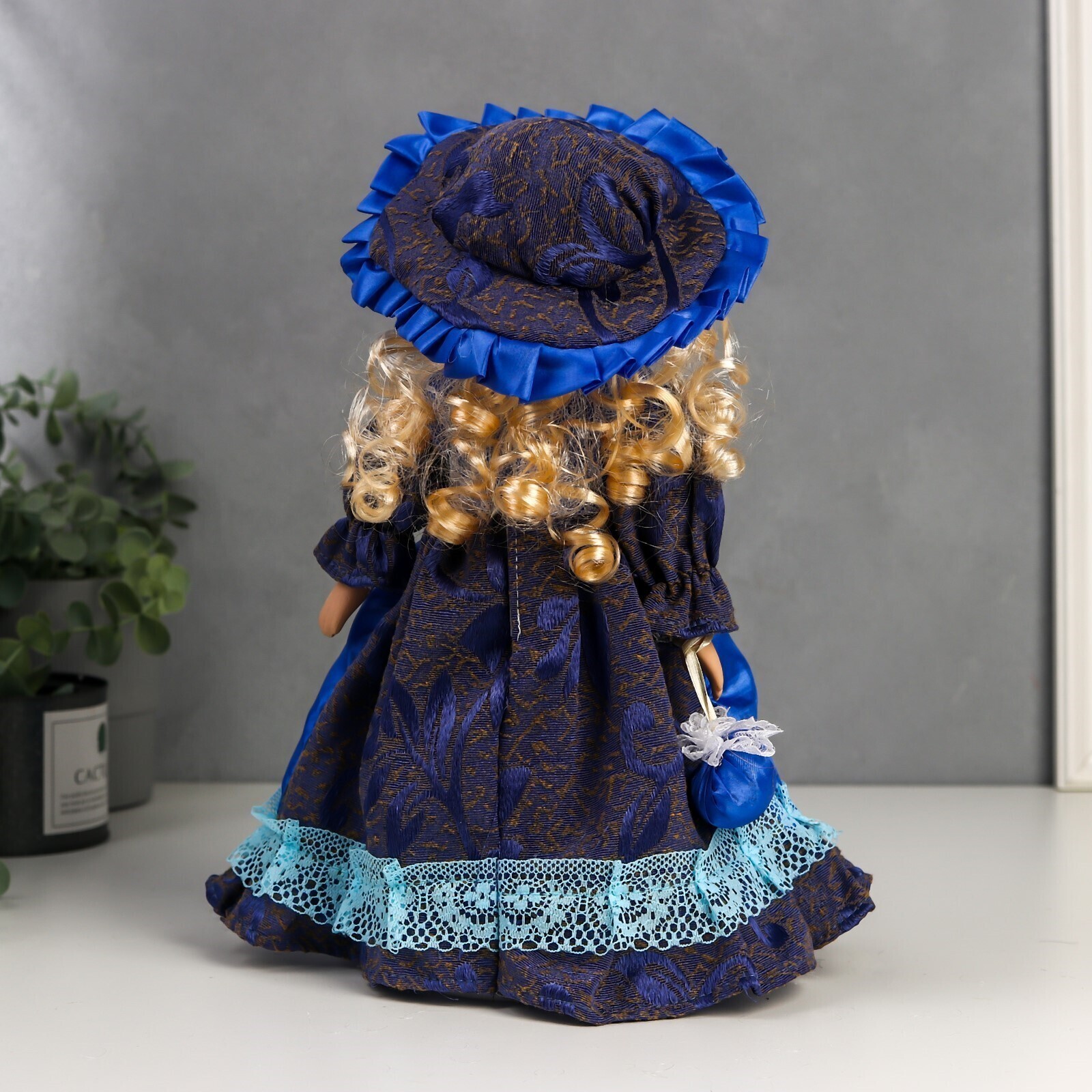 Кукла коллекционная керамика "Леди Есения в ярко-синем платье" 30 см