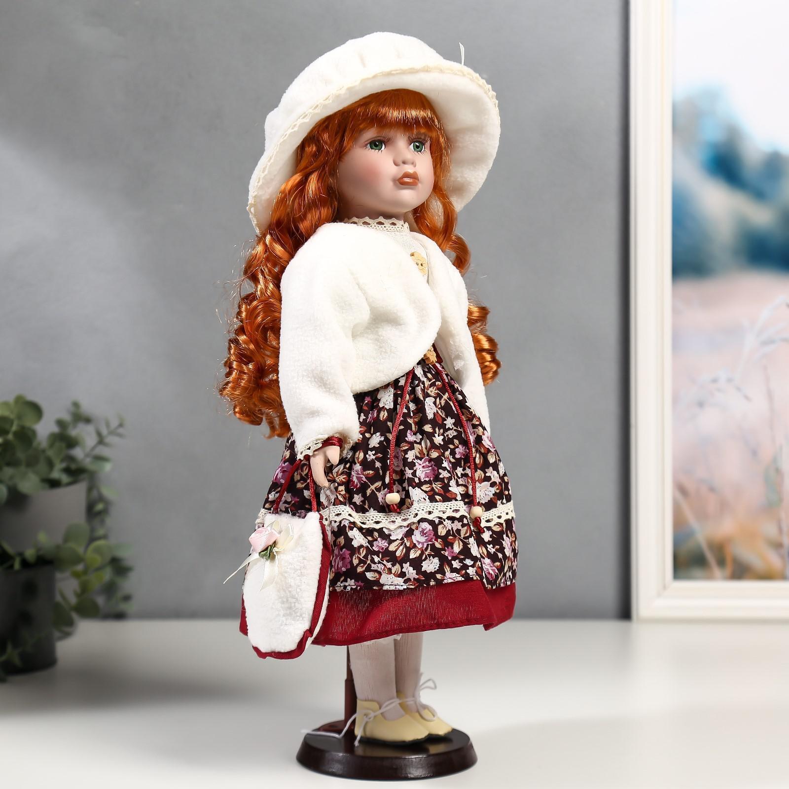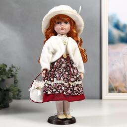 Кукла коллекционная керамика "Наташа в платье в цветочек и белом пиджаке" 40 см